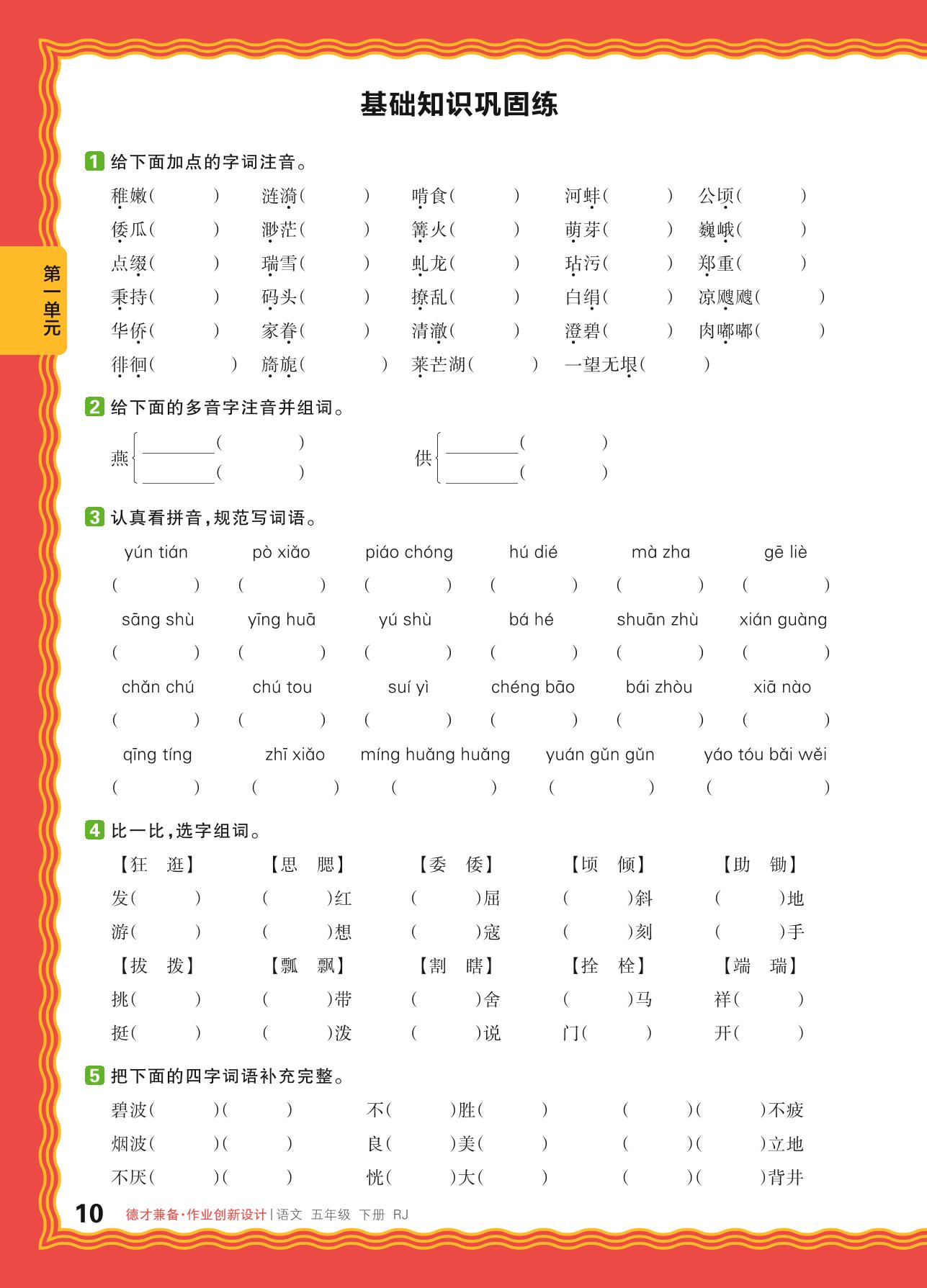 2024春下册五年级语文人教版 第一单元 童年往事——基础知识巩固练