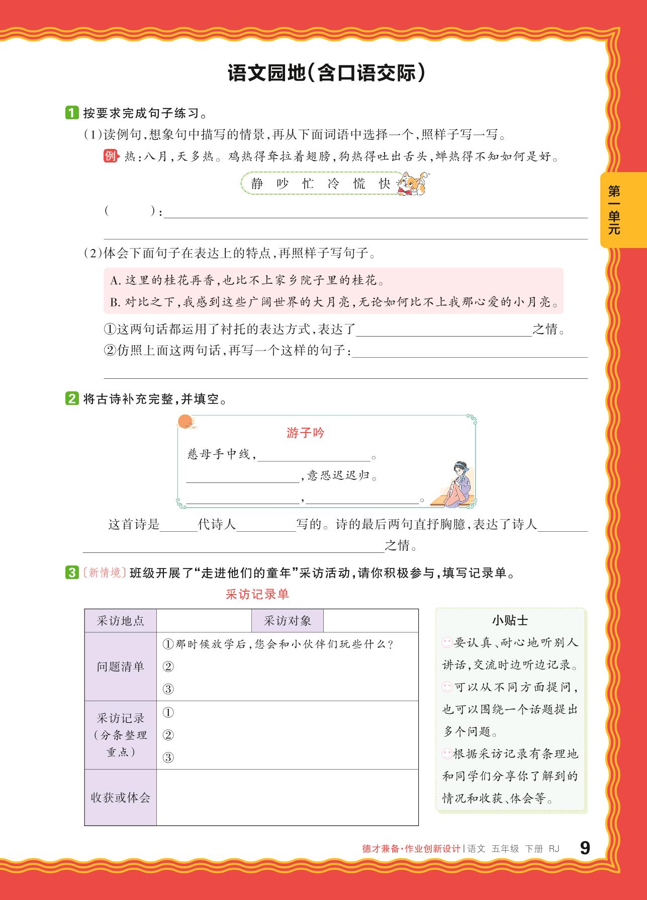 2024春下册五年级语文人教版 第一单元 童年往事——语文园地(含口语交际)