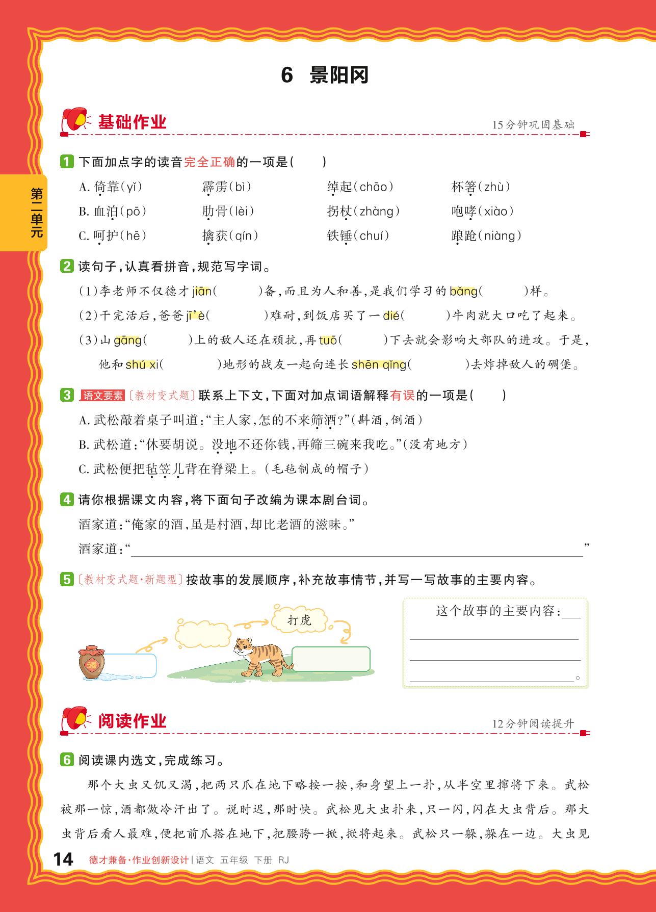 2024春下册五年级语文人教版 第二单元 走进中国古典名著——6. 景阳冈