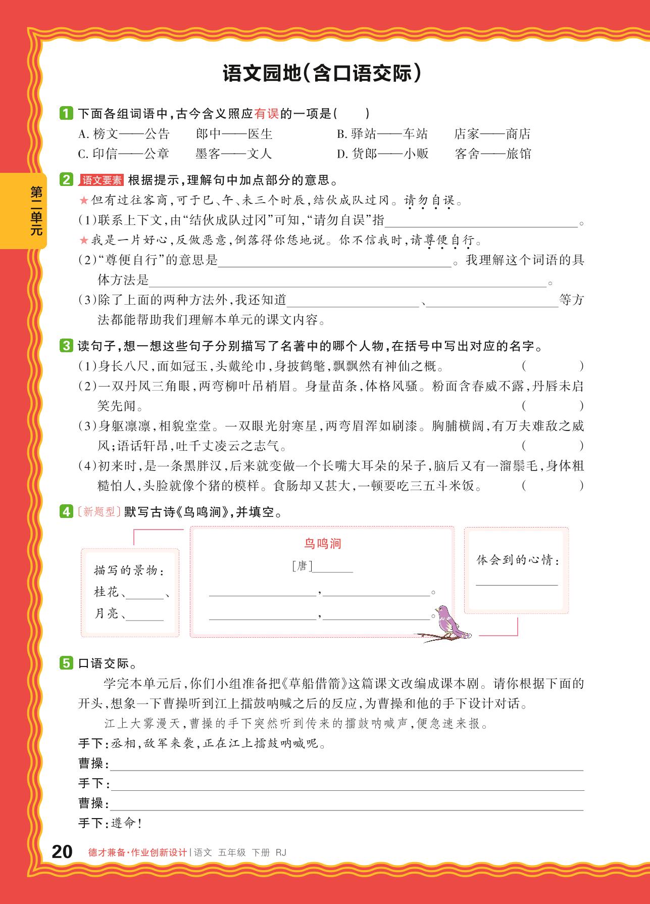 2024春下册五年级语文人教版 第二单元 走进中国古典名著——语文园地(含口语交际)
