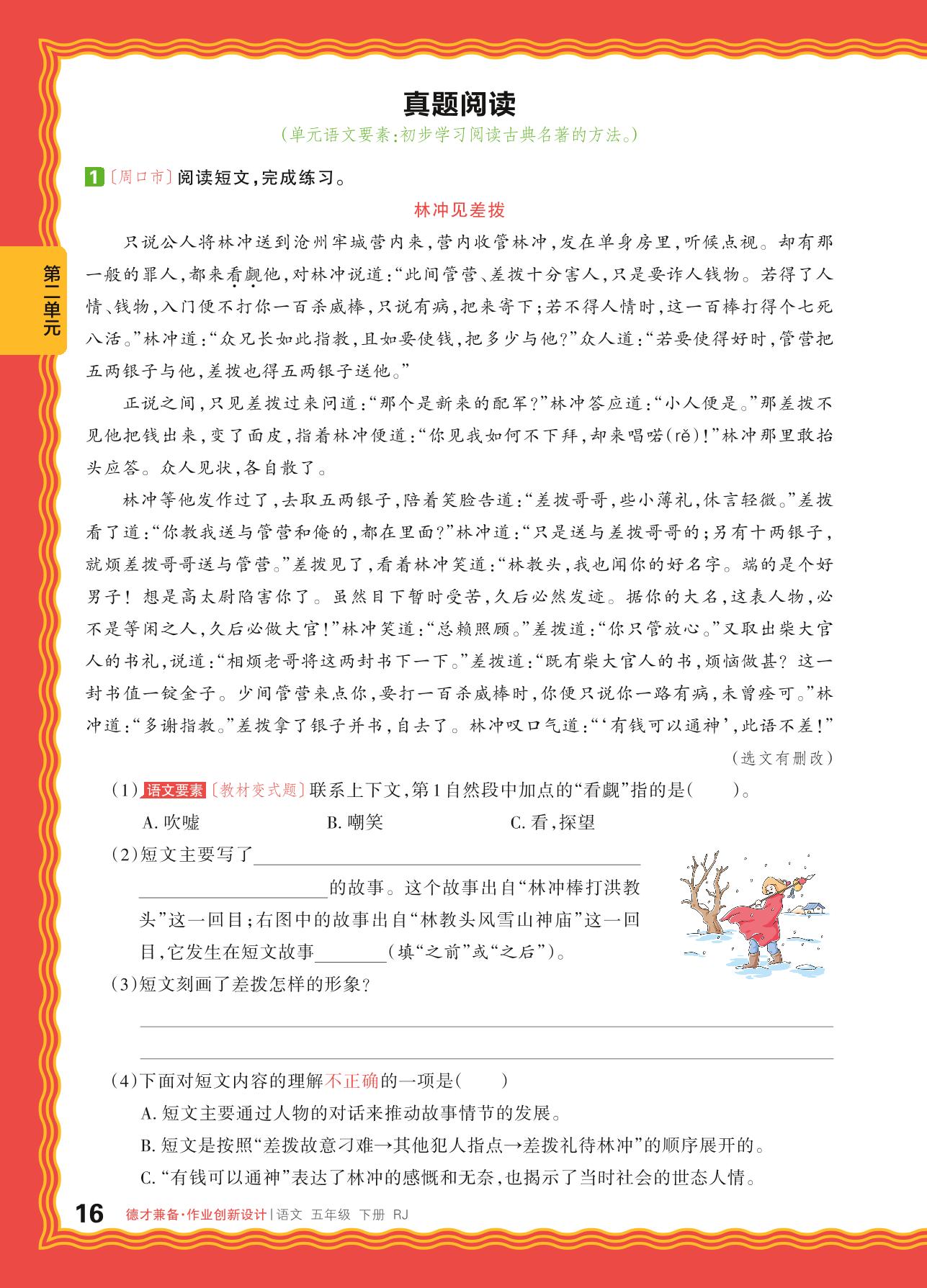 2024春下册五年级语文人教版 第二单元 走进中国古典名著——真题阅读