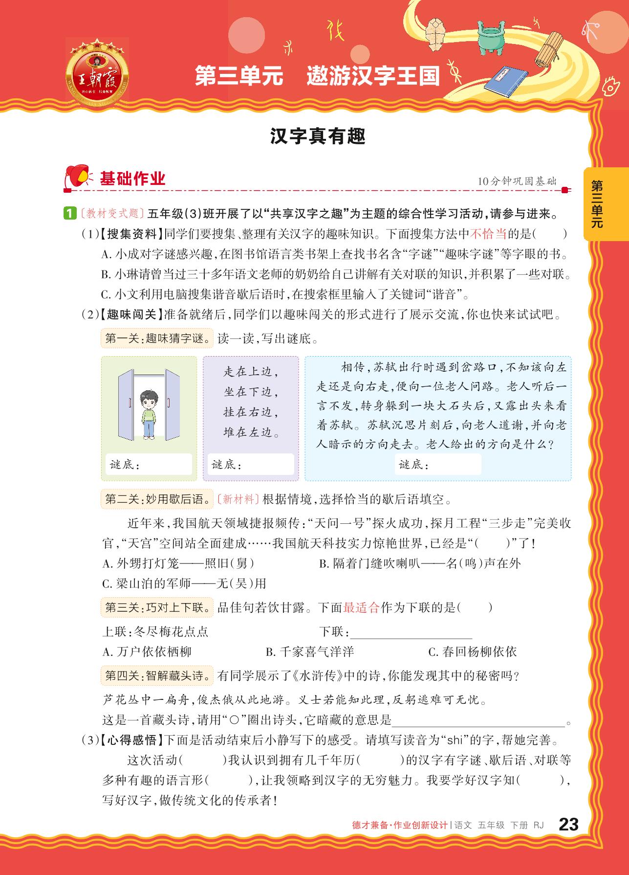 2024春下册五年级语文人教版 第三单元 遨游汉字王国——汉字真有趣