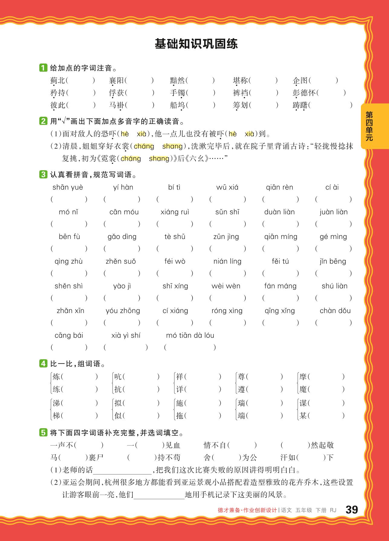2024春下册五年级语文人教版 第四单元 责任——基础知识巩固练