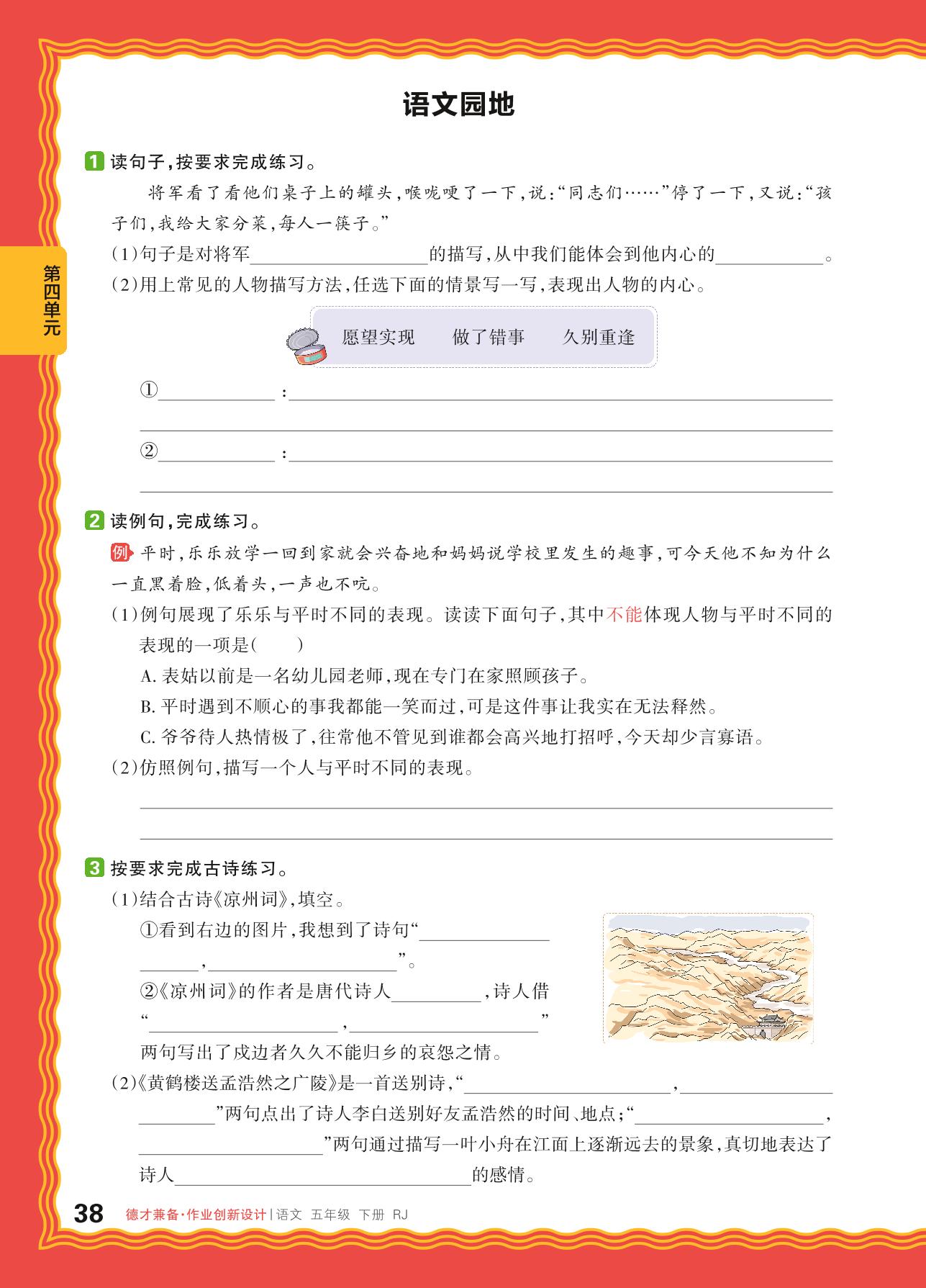 五年级语文人教版下册课时作业