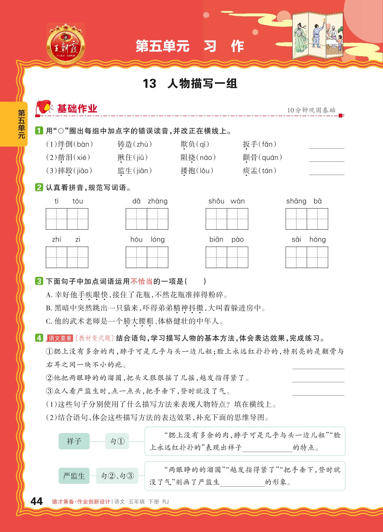 2024春下册五年级语文人教版 第五单元 习作——13. 人物描写的一组