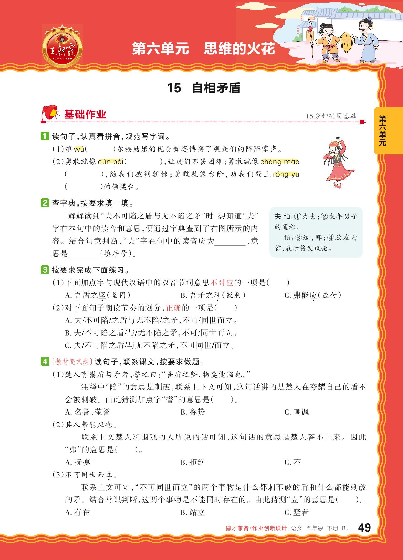 2024春下册五年级语文人教版 第六单元 思维的火花——15. 自相矛盾