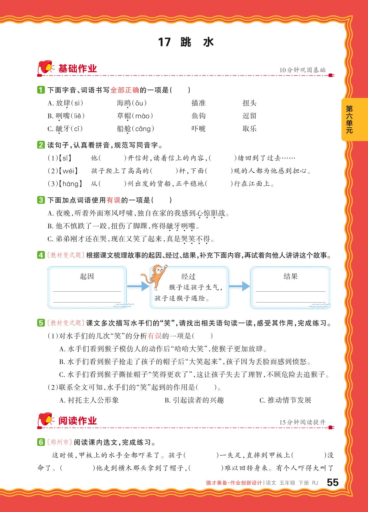 2024春下册五年级语文人教版 第六单元 思维的火花——17. 跳水
