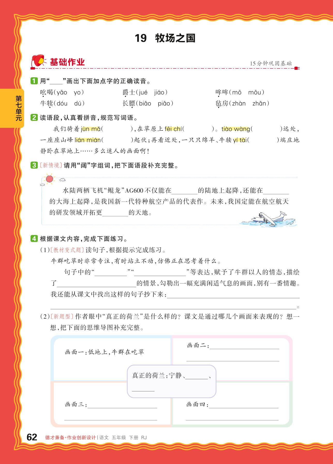 2024春下册五年级语文人教版 第七单元 世界各地——19. 牧场之国