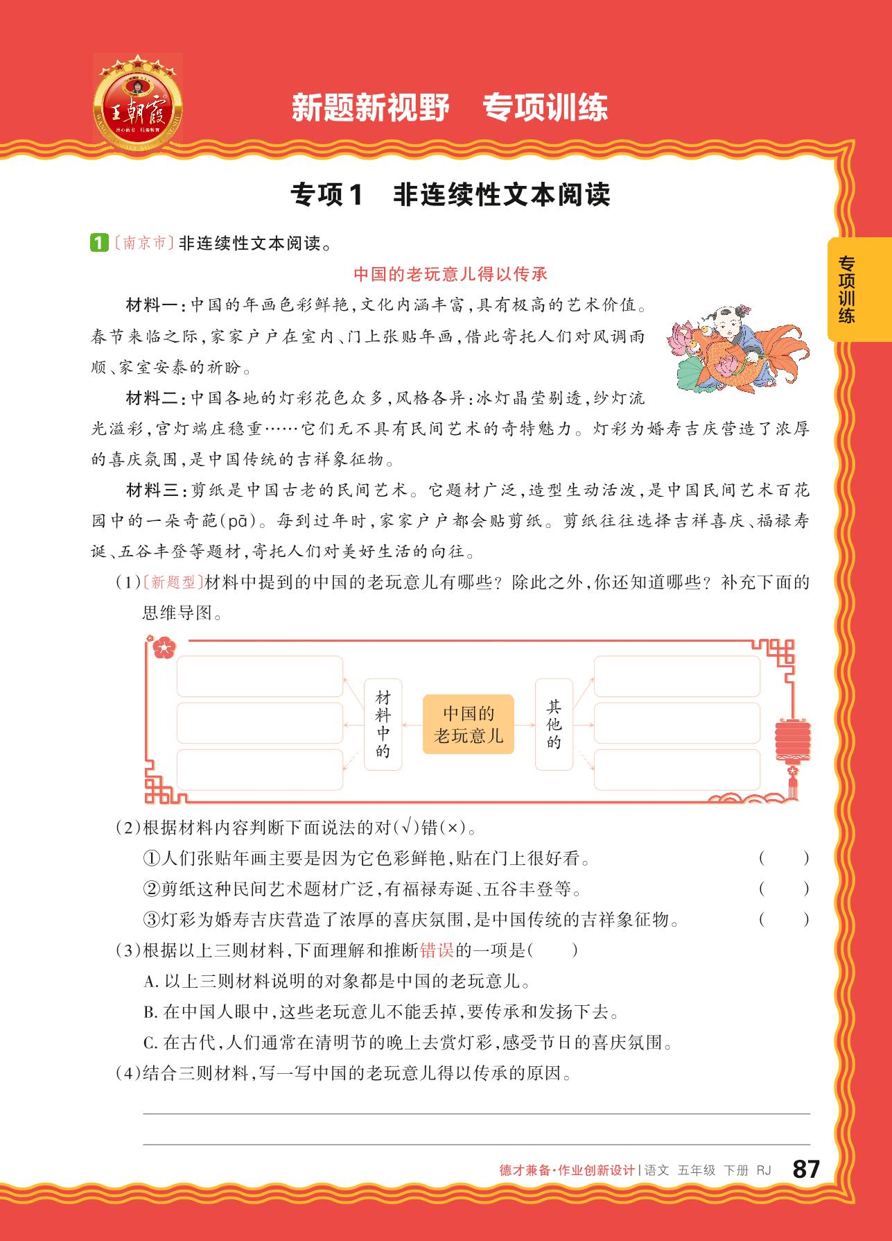 2024春下册五年级语文人教版 新题新视野 专项训练——非连续性文本阅读【1】