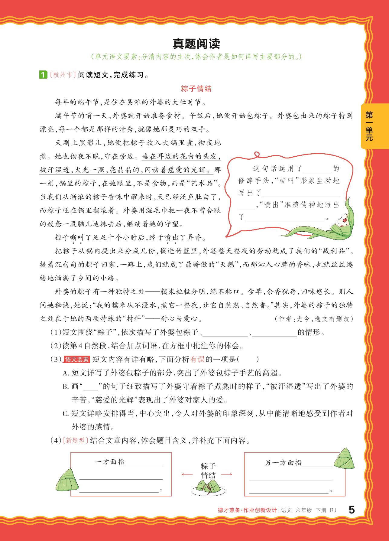 2024春下册六年级语文人教版 第一单元 民风民俗——真题阅读