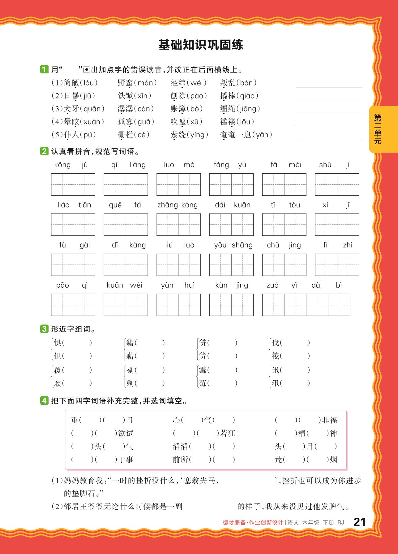 六年级语文人教版下册单元卷