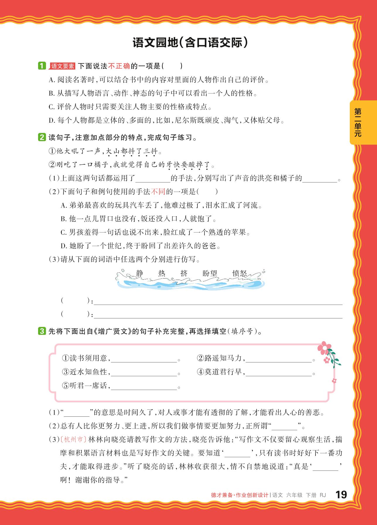 2024春下册六年级语文人教版 第二单元 外国文学名著——语文园地(含口语交际)_R240117145131745