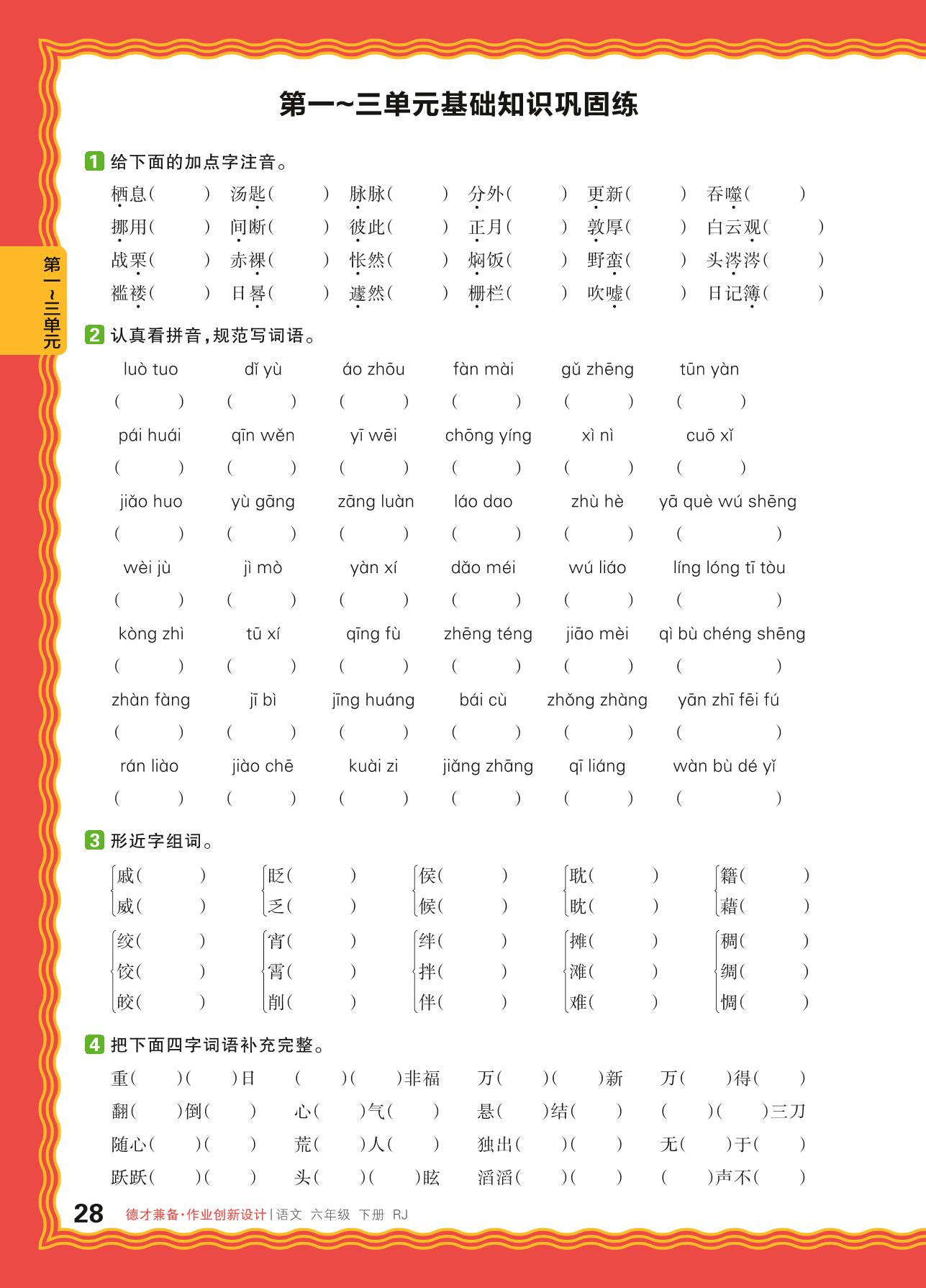 2024春下册六年级语文人教版 第三单元 习作——第一~三单元基础知识巩固练