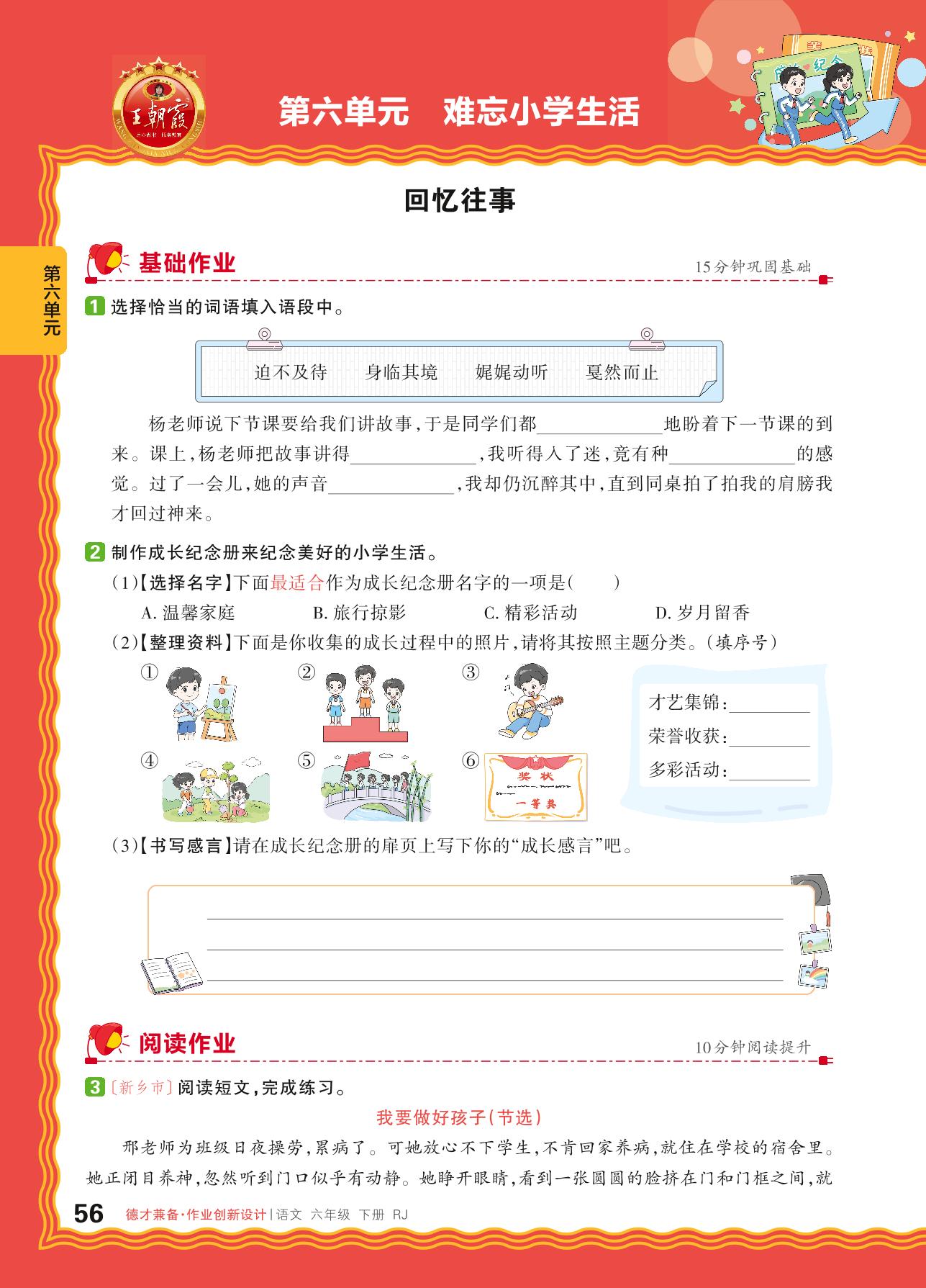 2024春下册六年级语文人教版 第六单元 难忘小学生活——回忆往事_R240117145138861