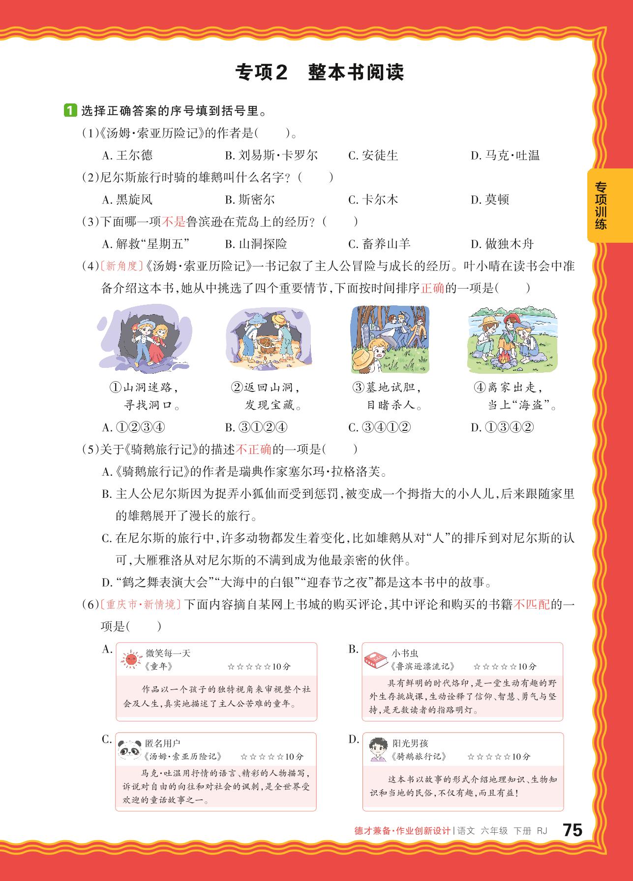 2024春下册六年级语文人教版 新题新视野 专项训练——整本书阅读【2】