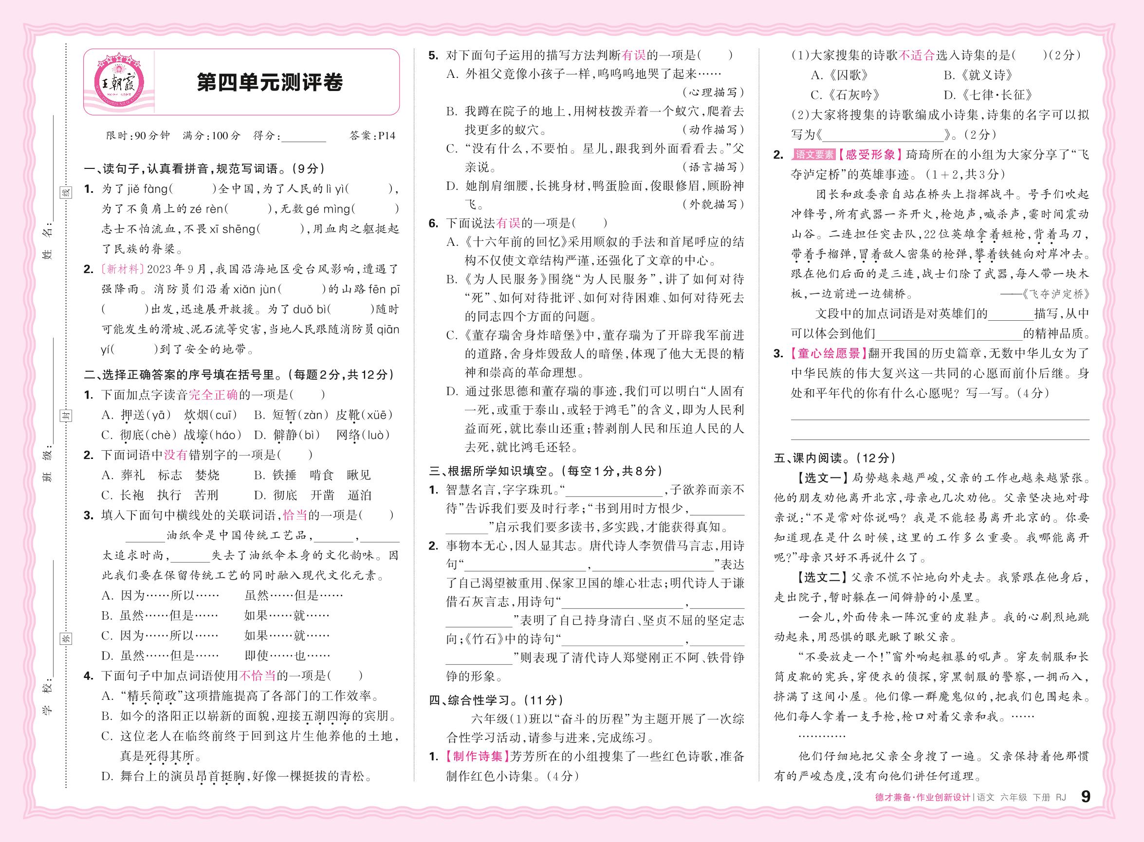 六年级语文人教版下册单元卷