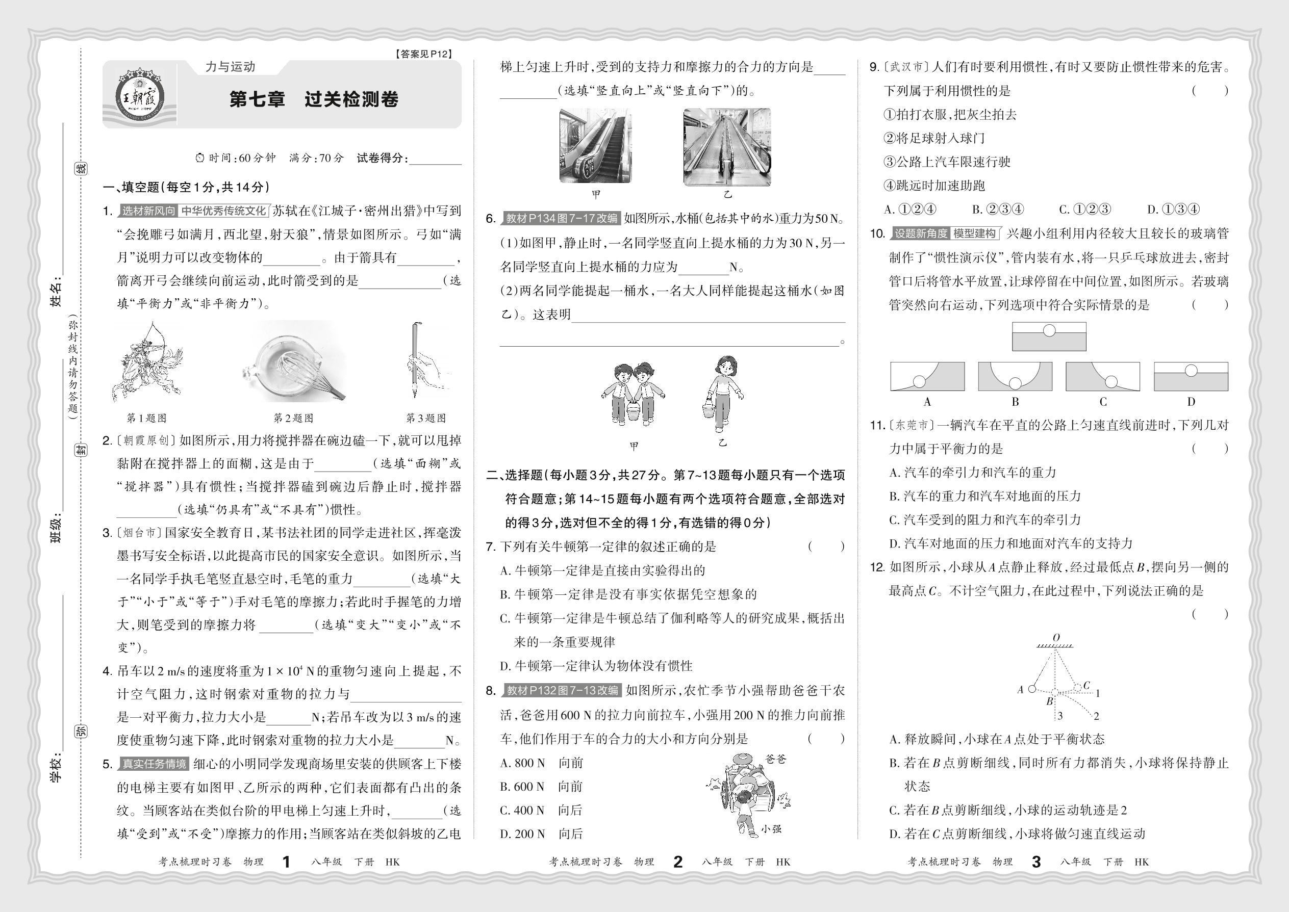 八年级物理沪科版下册单元卷