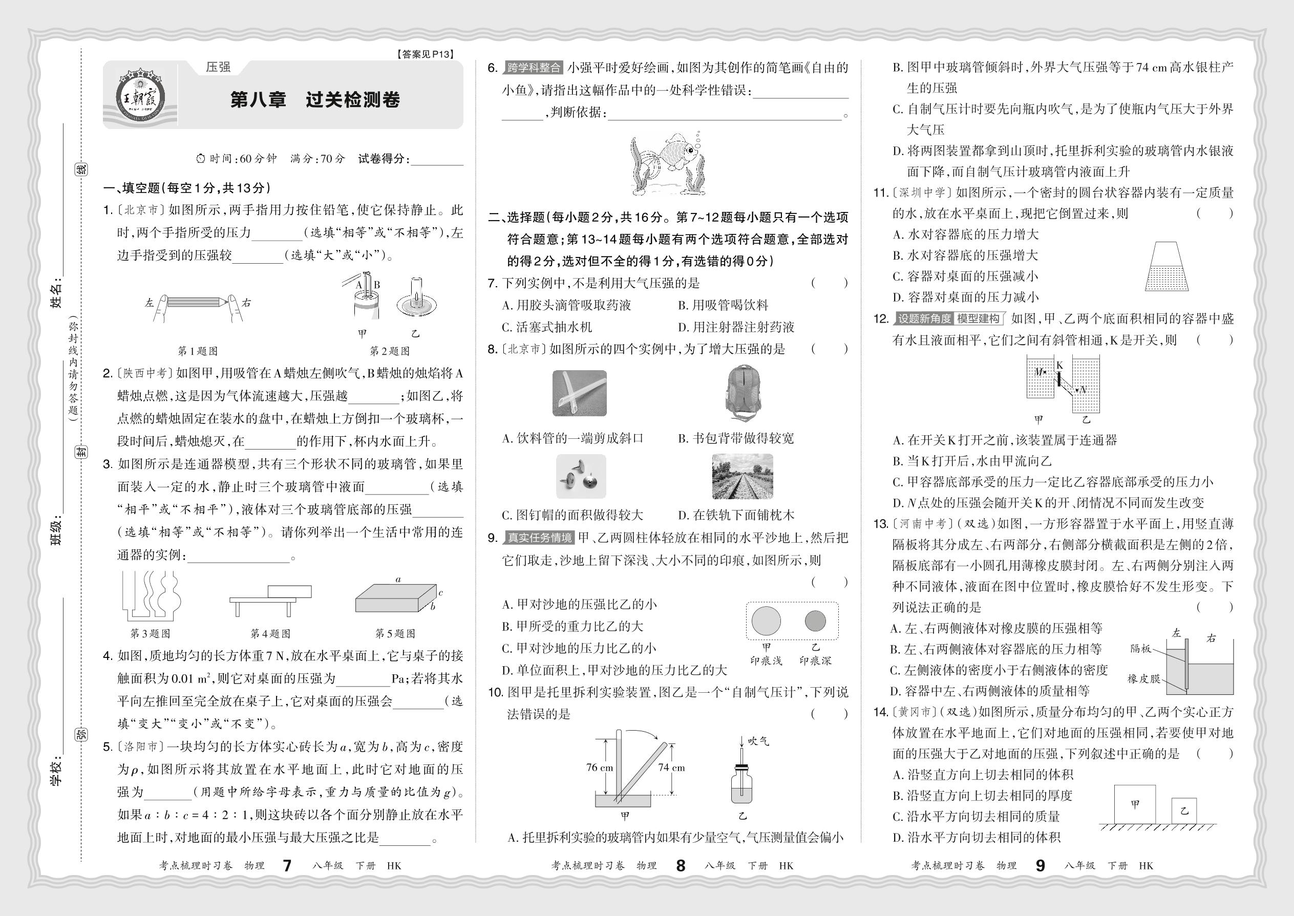 八年级物理沪科版下册单元卷