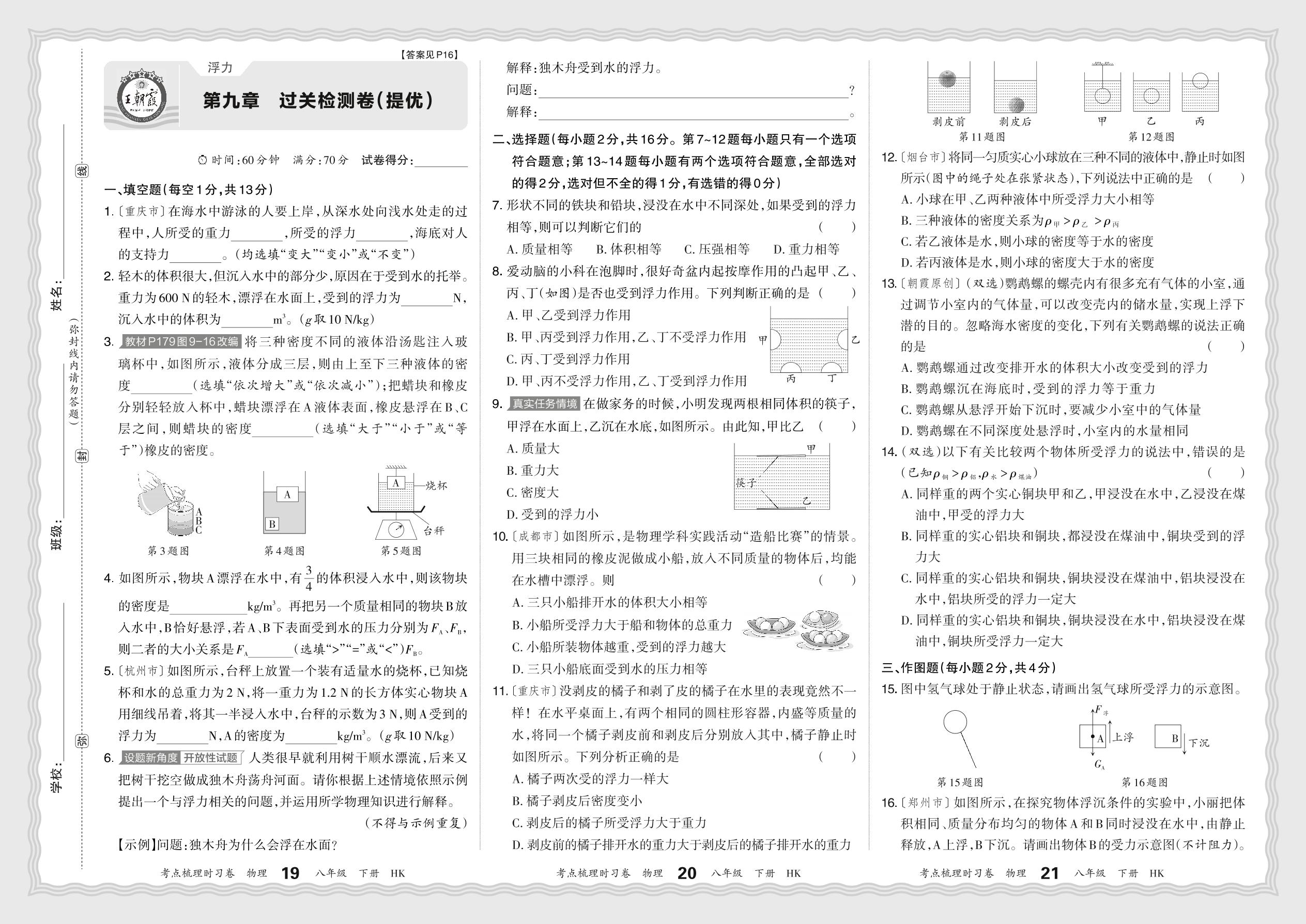 八年级物理沪科版下册单元卷