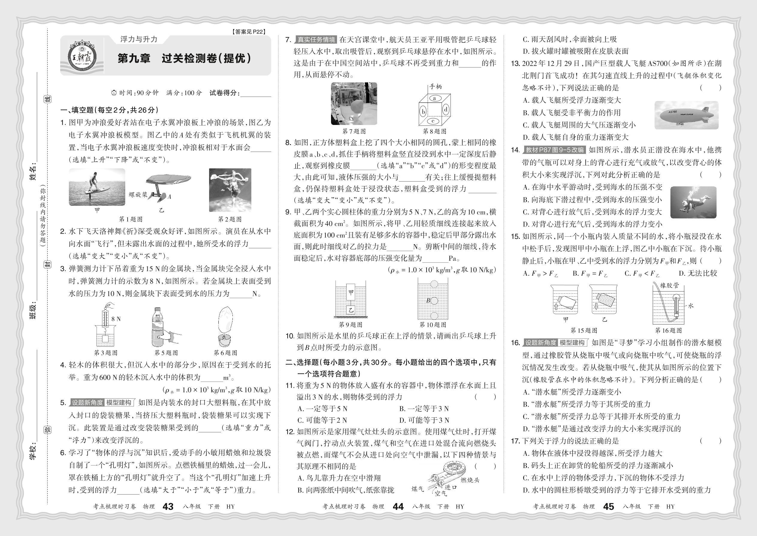 2024春下册八年级物理沪粤版 第九章 过关检测卷(提优)