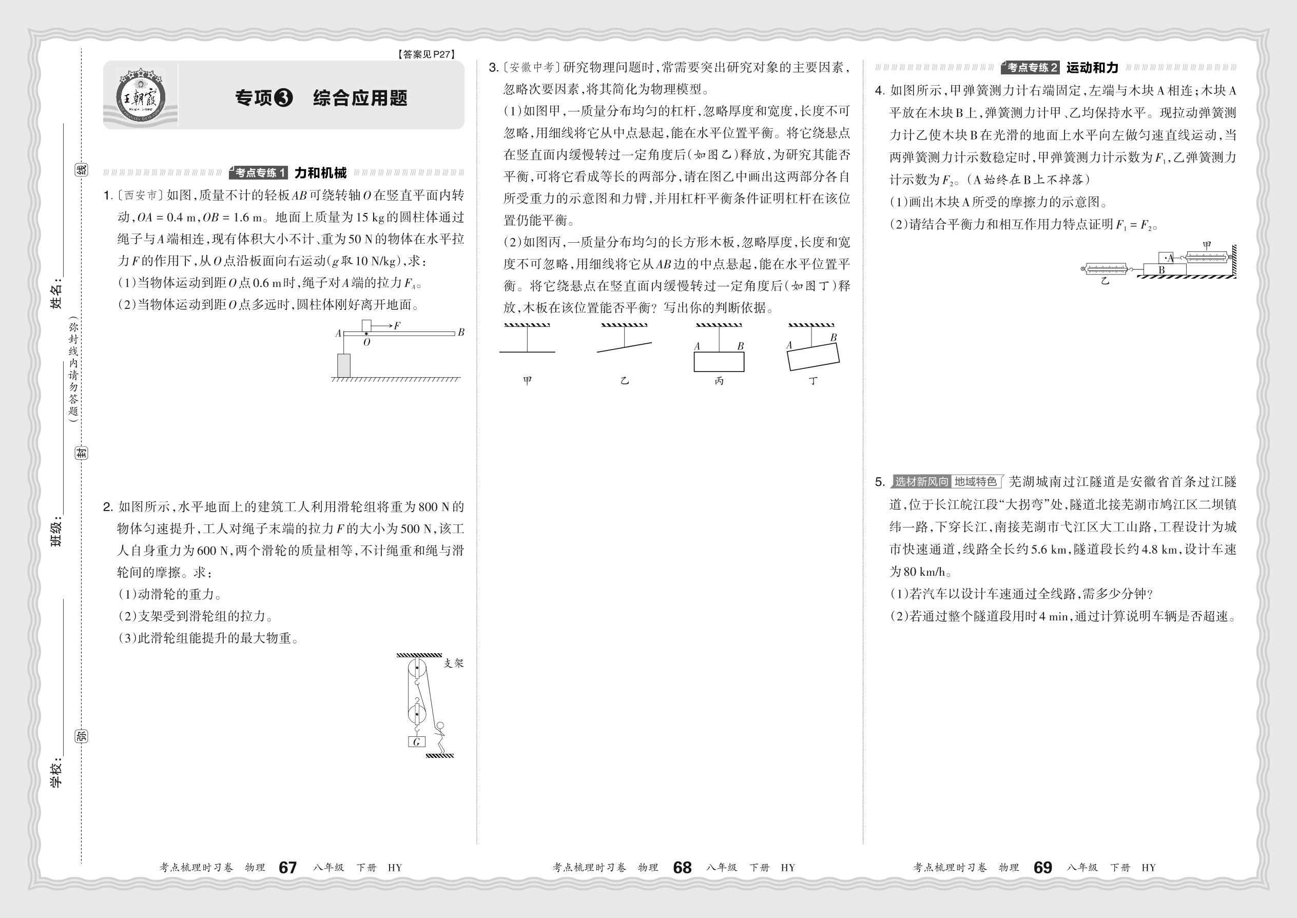 八年级物理沪粤版下册专项卷