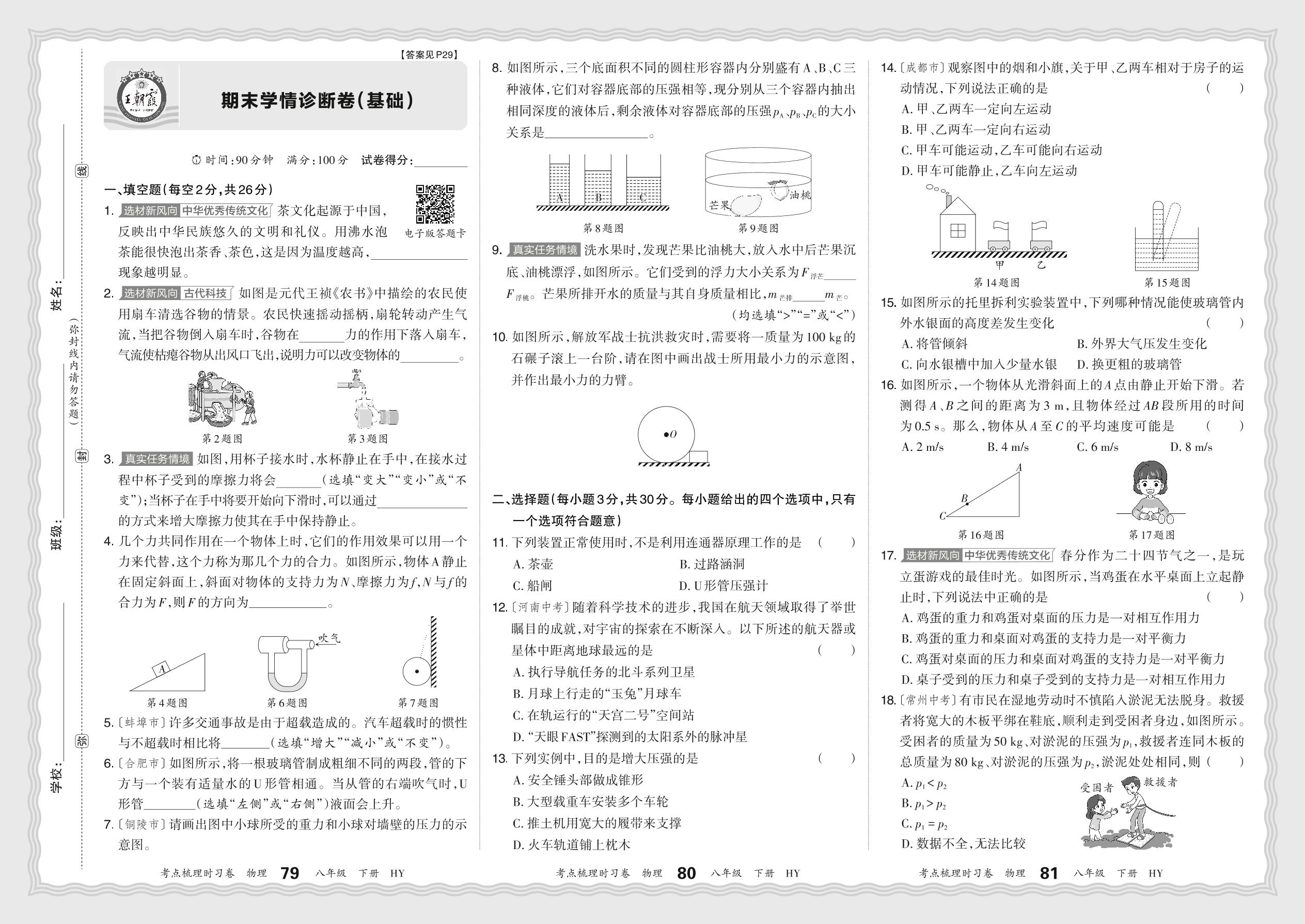2024春下册八年级物理沪粤版 期末学情诊断卷(基础)