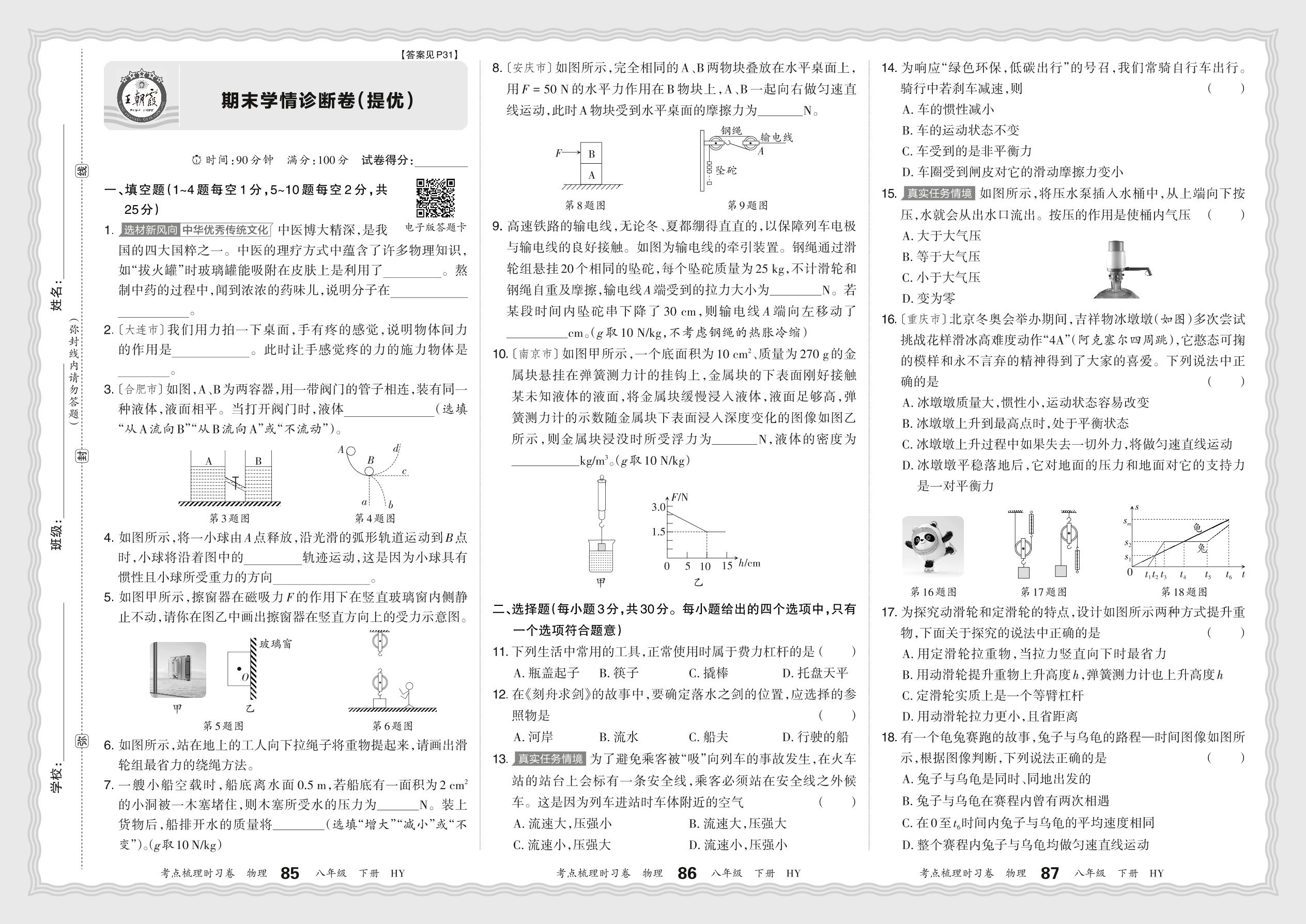 八年级物理沪粤版下册期末卷