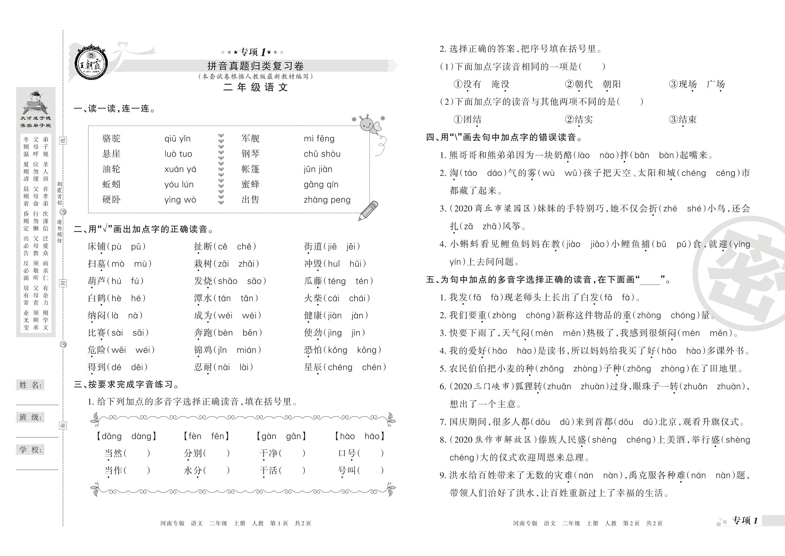王朝霞期末专项卷——拼音、汉字真题归类复习二年级上册语文(人教版)_R21080164349【0】