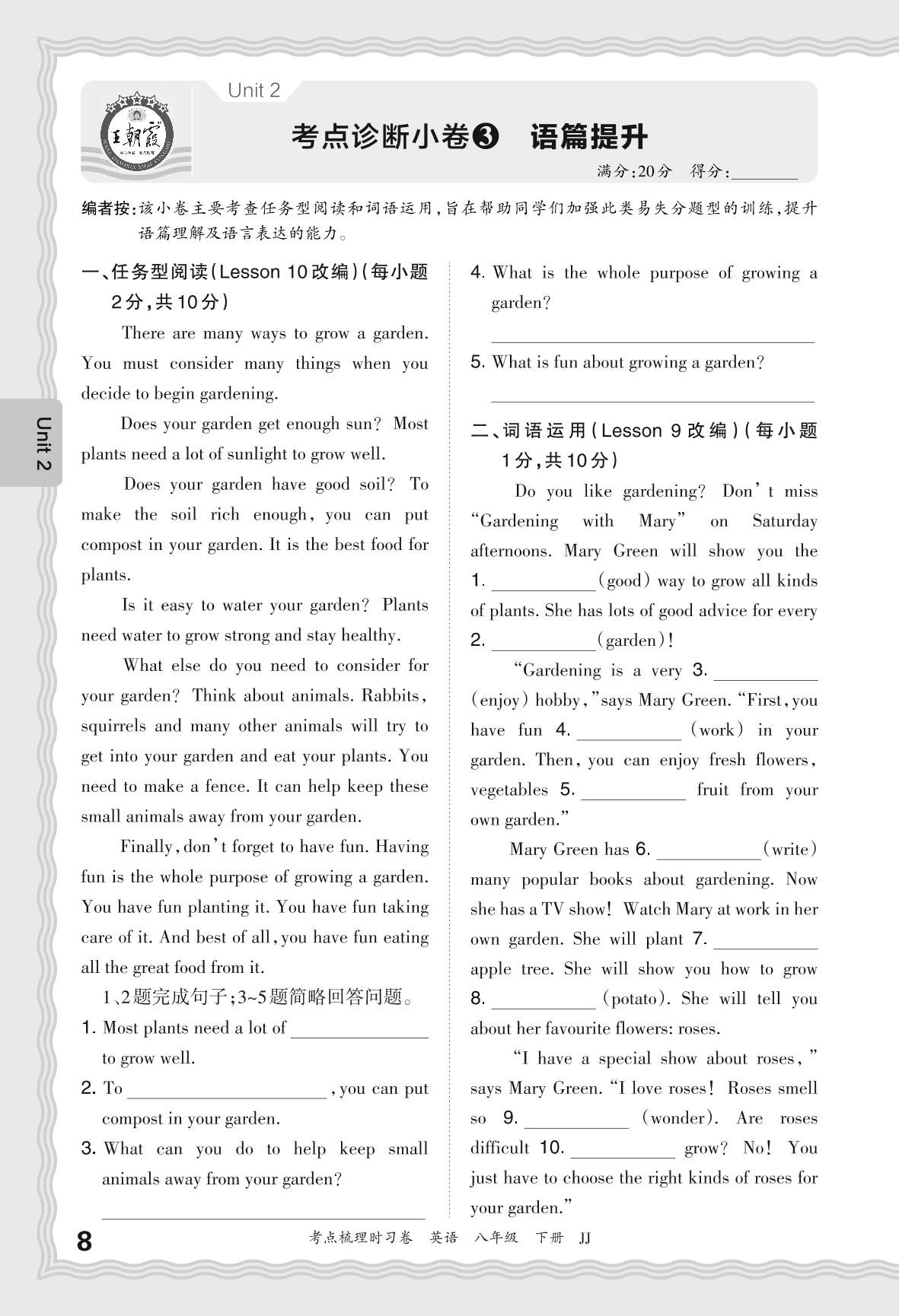 2024春下册八年级英语冀教版 Unit 2 考点诊断小卷3 语篇提升