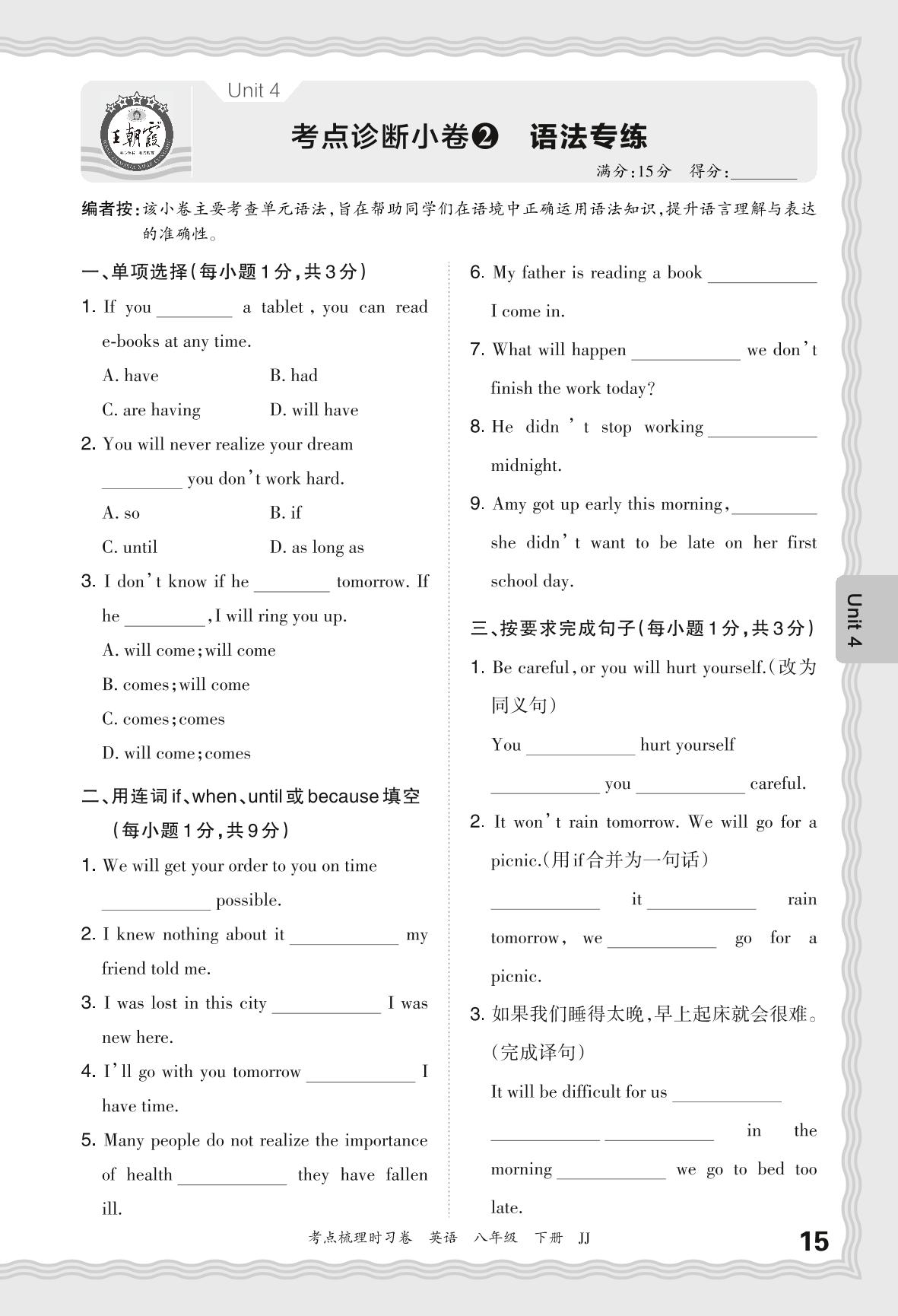 2024春下册八年级英语冀教版 Unit 4 考点诊断小卷2 语法专练