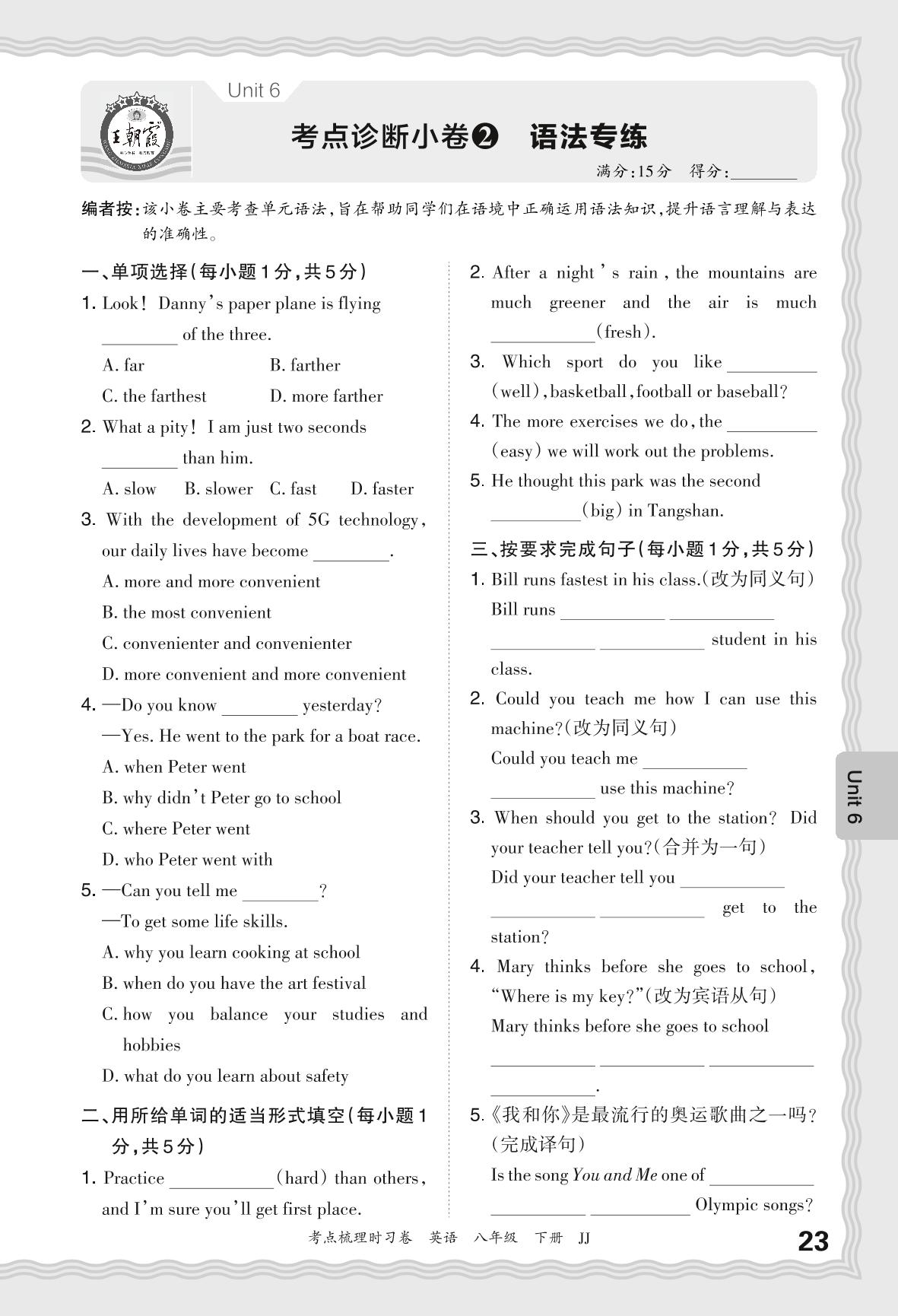 2024春下册八年级英语冀教版 Unit 6 考点诊断小卷2 语法专练