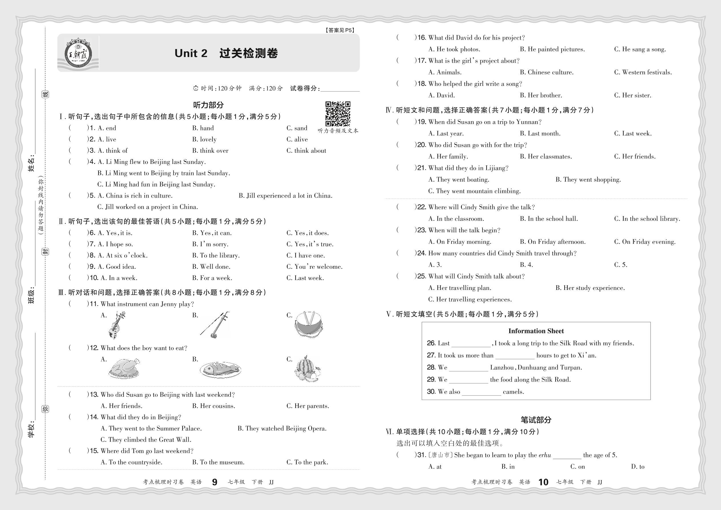 七年级英语冀教版下册单元卷