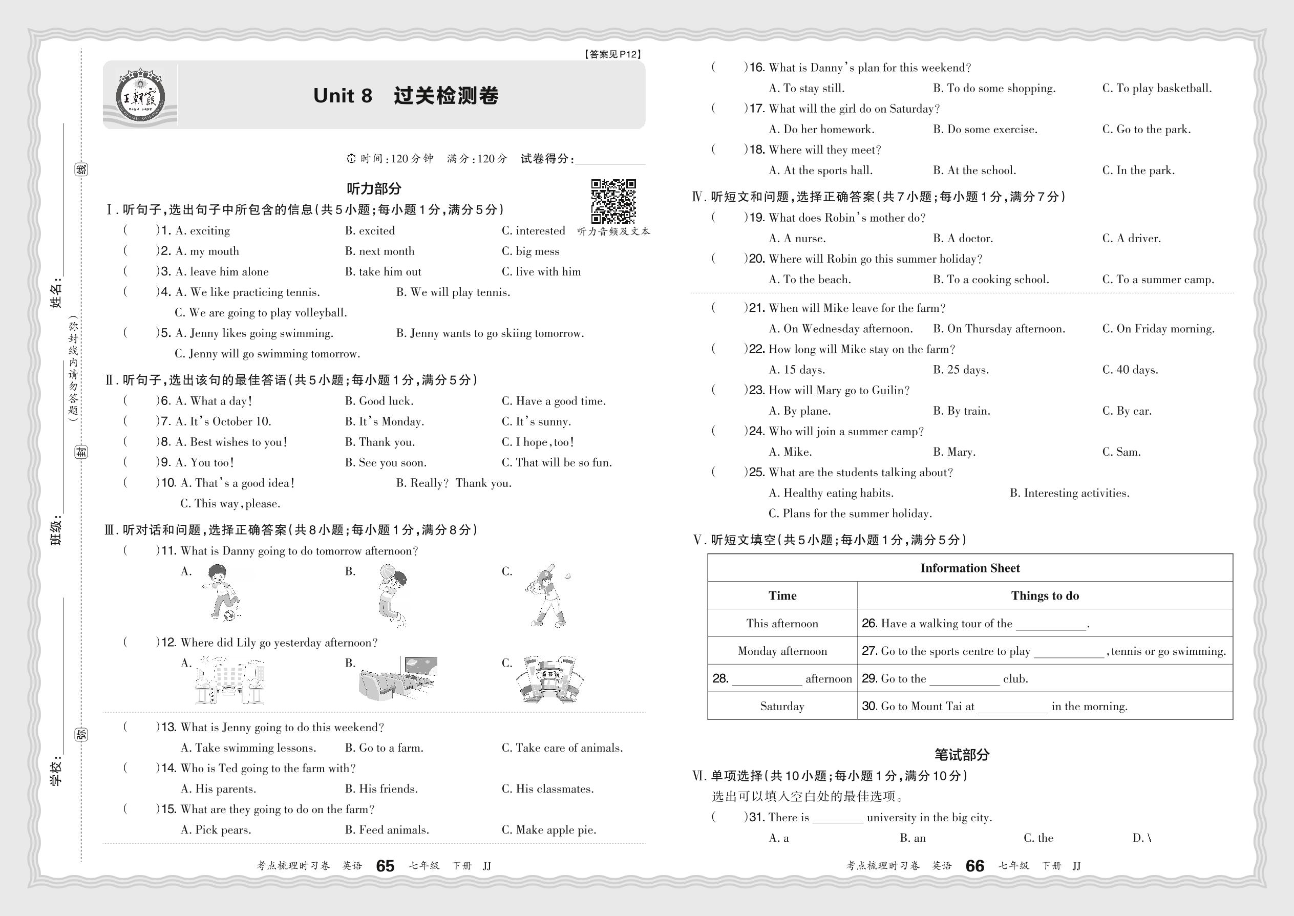 2024春下册七年级英语冀教版 Unit 8 过关检测卷