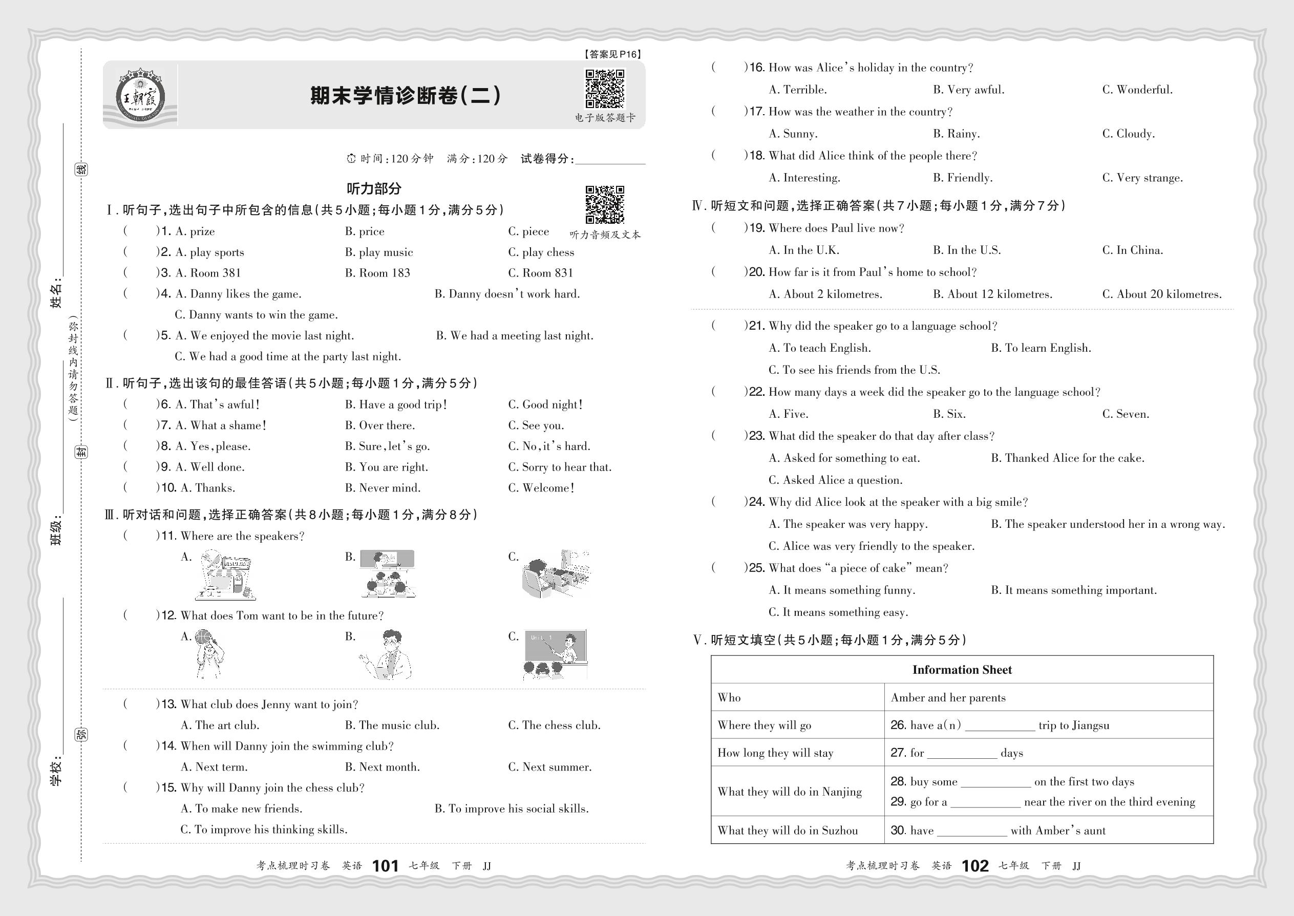 2024春下册七年级英语冀教版 期末学情诊断卷(二)