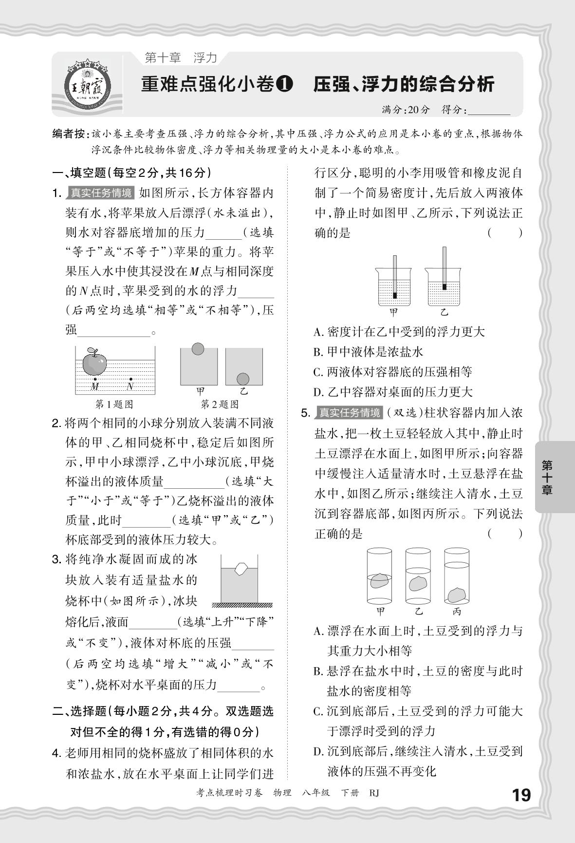 2024春下册八年级物理人教版 第十章 重难点强化小卷1 压强、浮力的综合分析