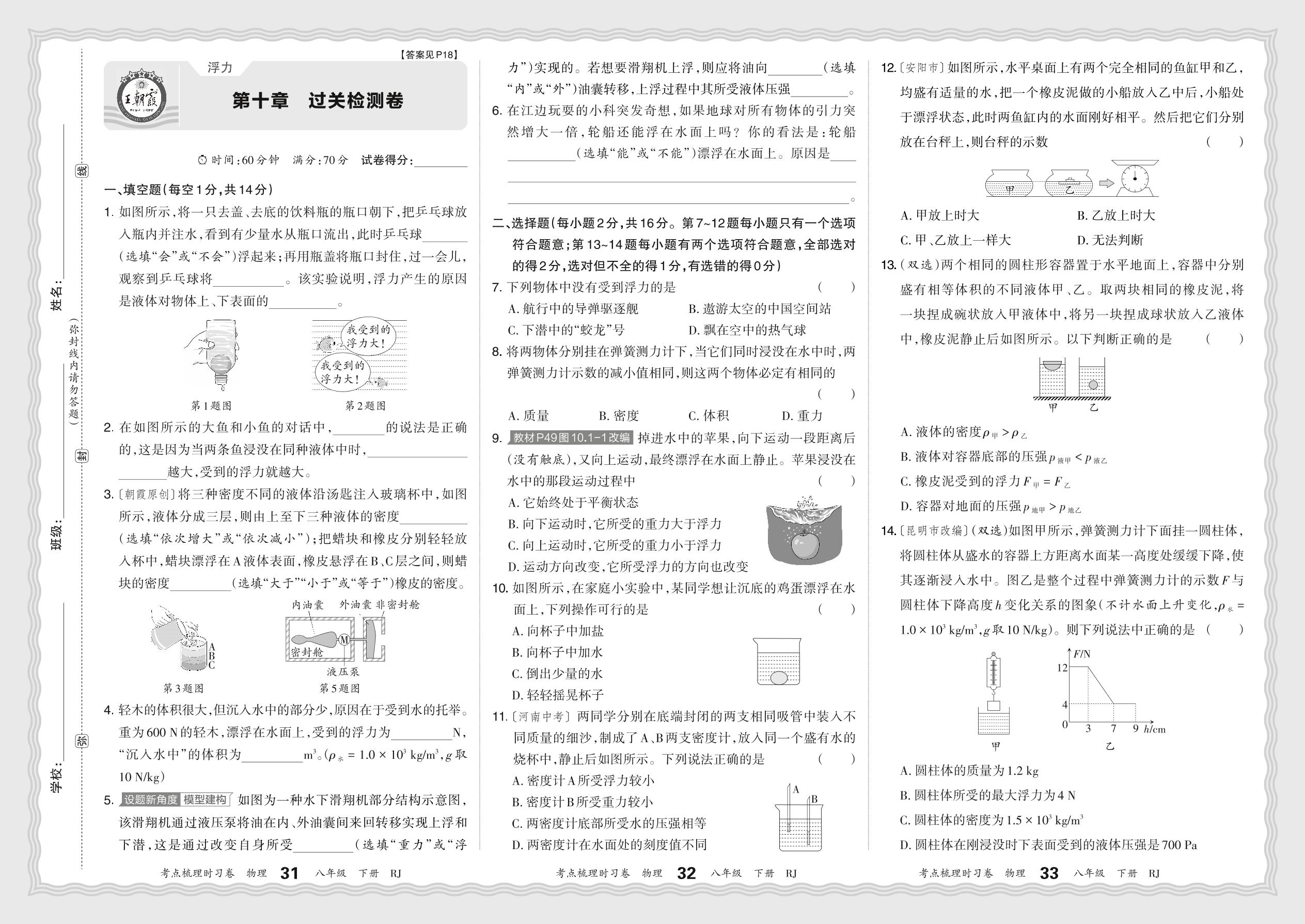 2024春下册八年级物理人教版 第十章 过关检测卷