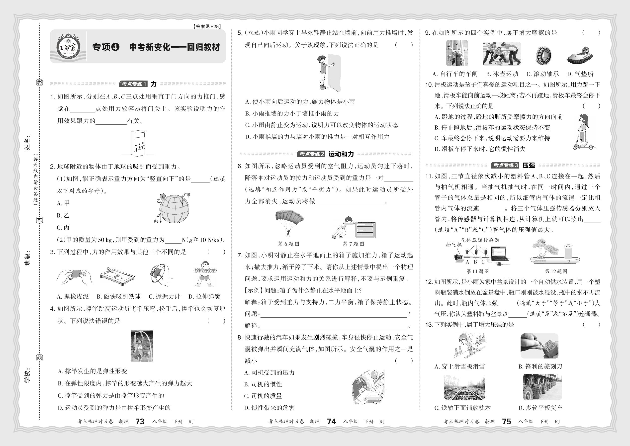 2024春下册八年级物理人教版 期末专项卷KD版·中考新变化——回归教材【4】