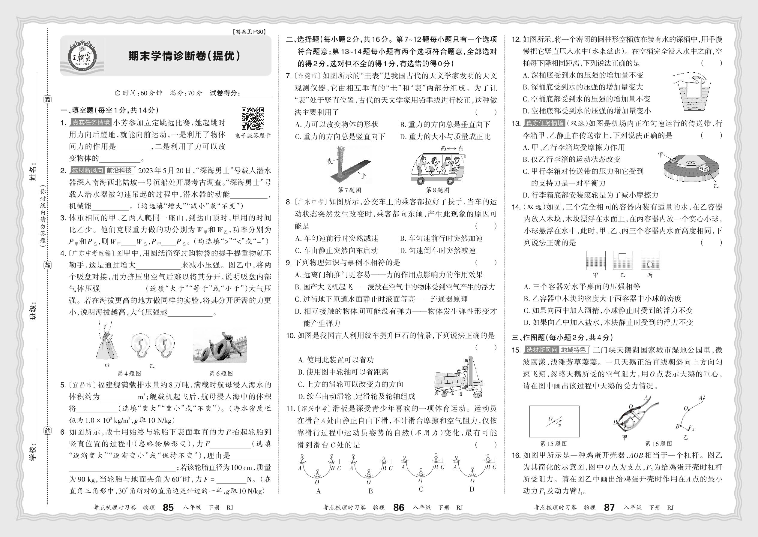 2024春下册八年级物理人教版 期末学情诊断卷(提优)