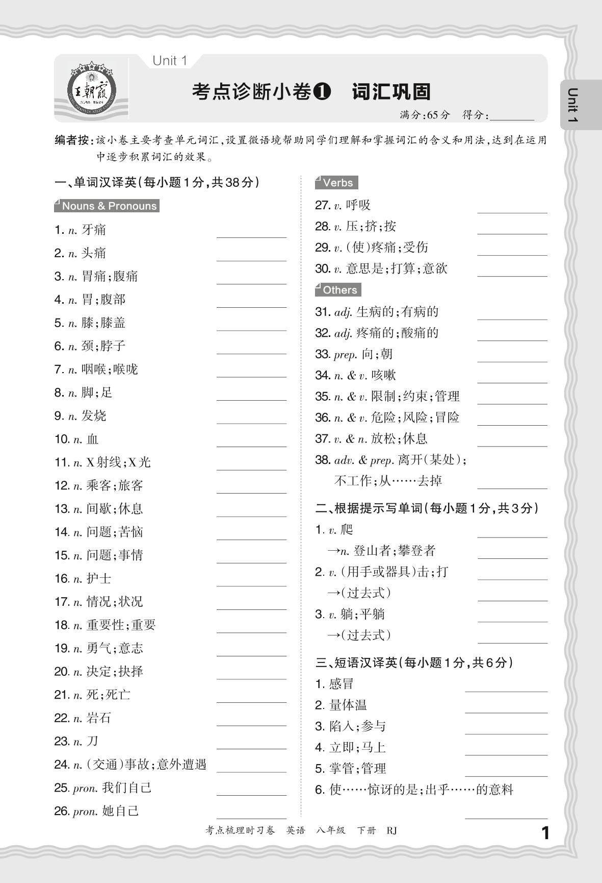 2024春下册八年级英语人教版 Unit 1 考点诊断小卷1 词汇巩固_R240117170243554