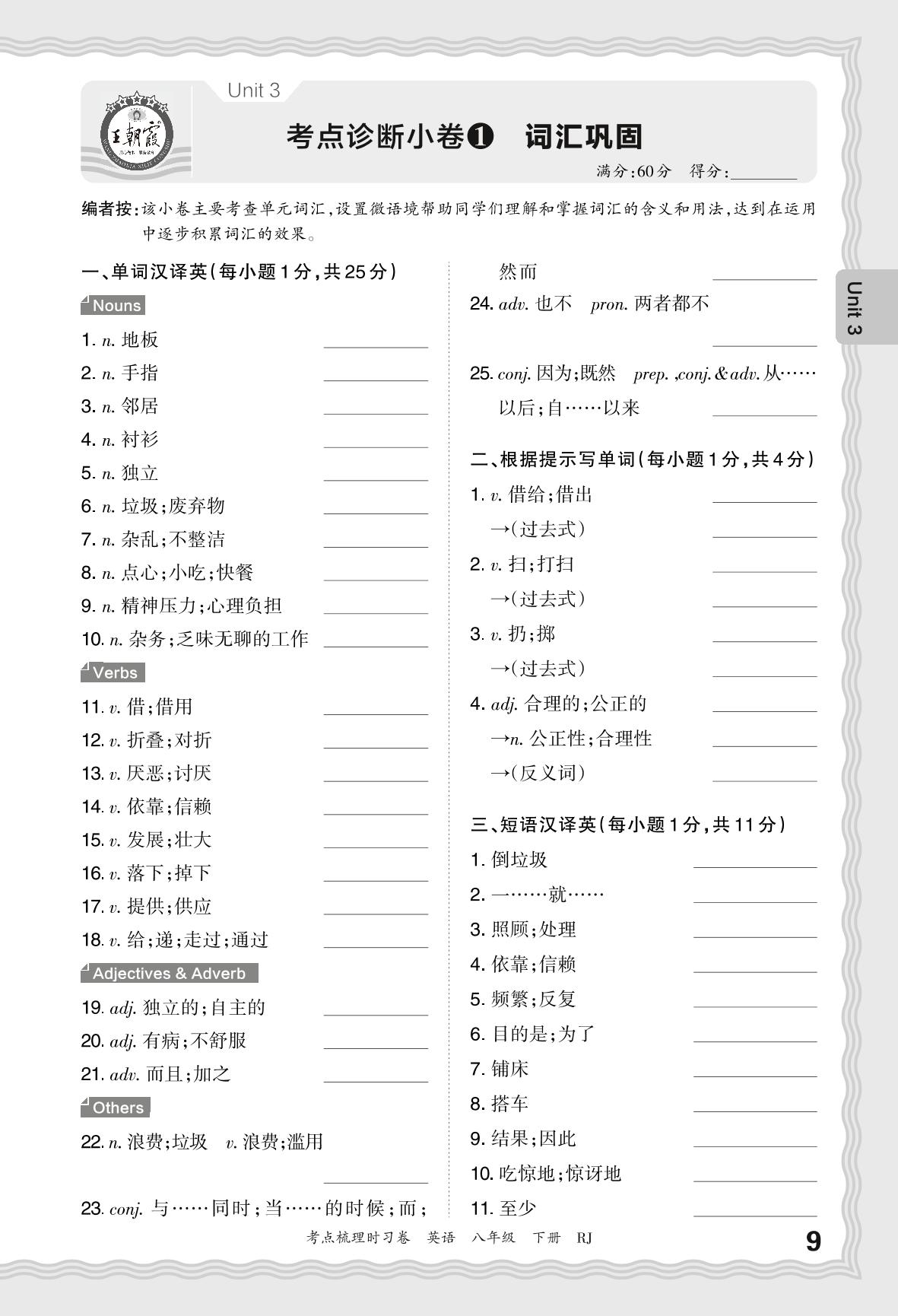 2024春下册八年级英语人教版 Unit 3 考点诊断小卷1 词汇巩固_R240117170245610