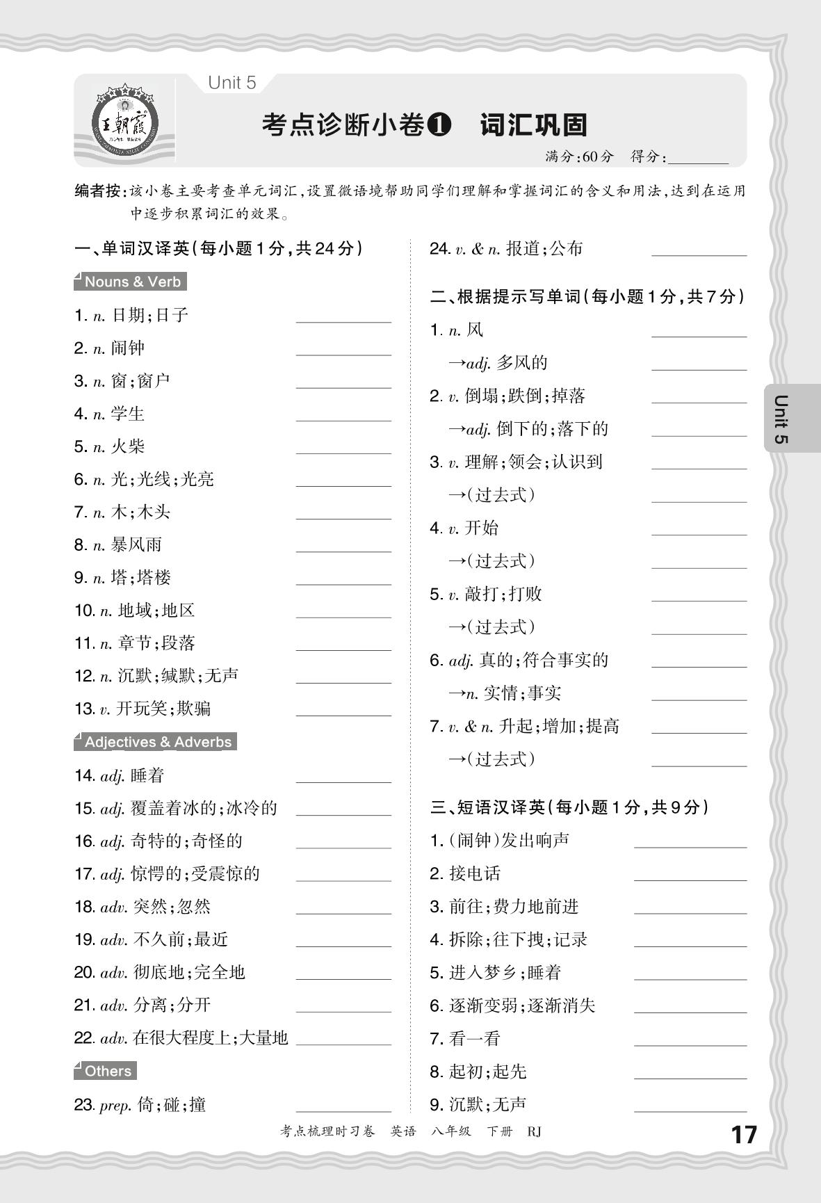 2024春下册八年级英语人教版 Unit 5 考点诊断小卷1 词汇巩固_R240117170247704