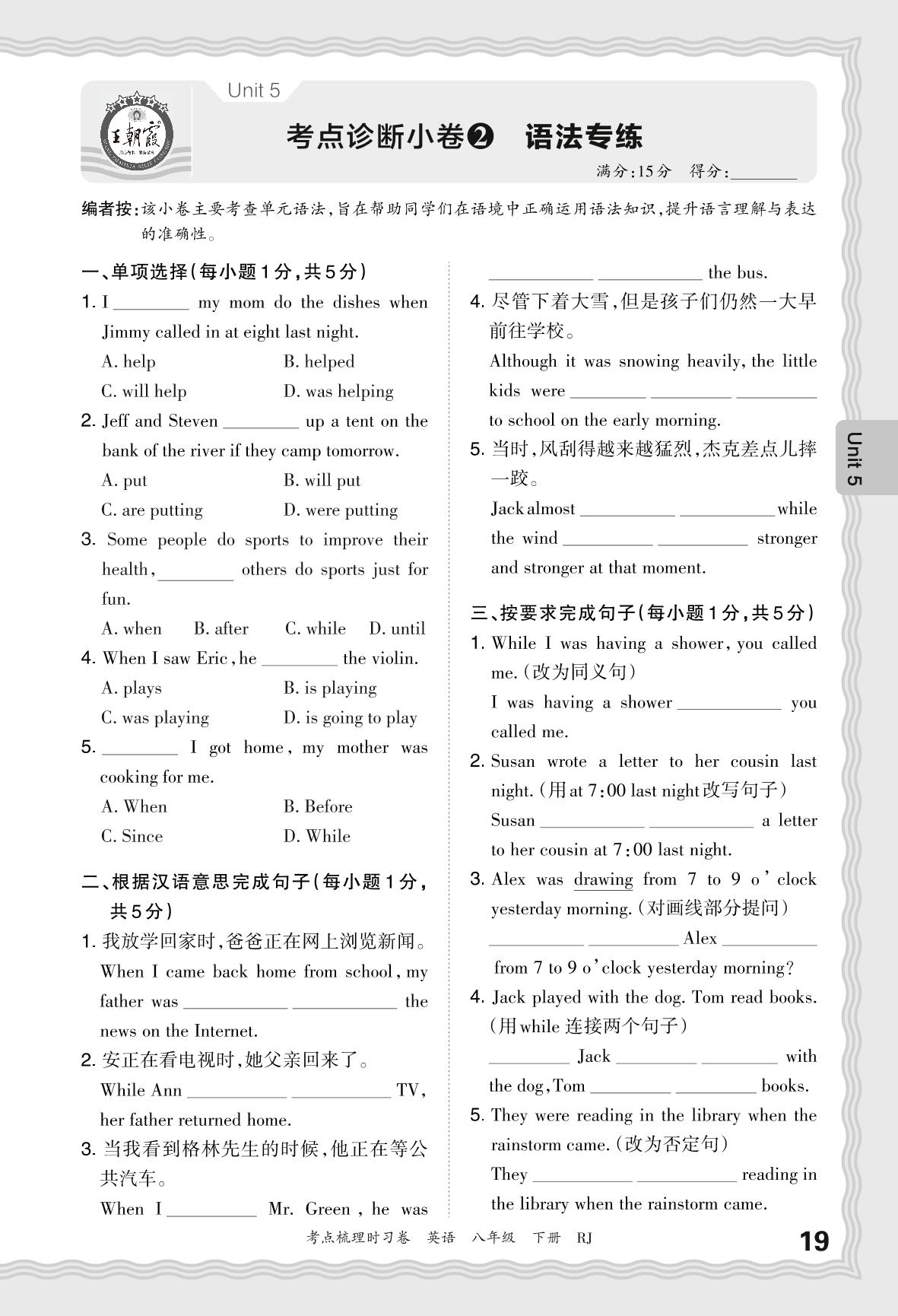2024春下册八年级英语人教版 Unit 5 考点诊断小卷2 语法专练_R240117170248764