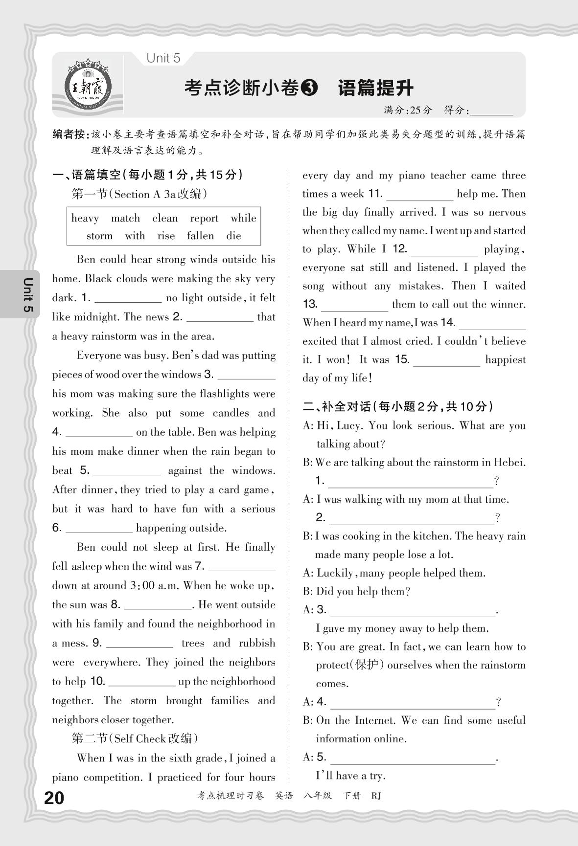 2024春下册八年级英语人教版 Unit 5 考点诊断小卷3 语篇提升_R240117170248845
