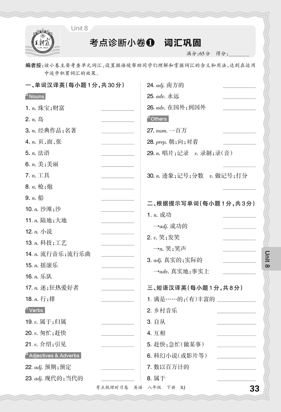 2024春下册八年级英语人教版 Unit 8 考点诊断小卷1 词汇巩固_R240117170251861