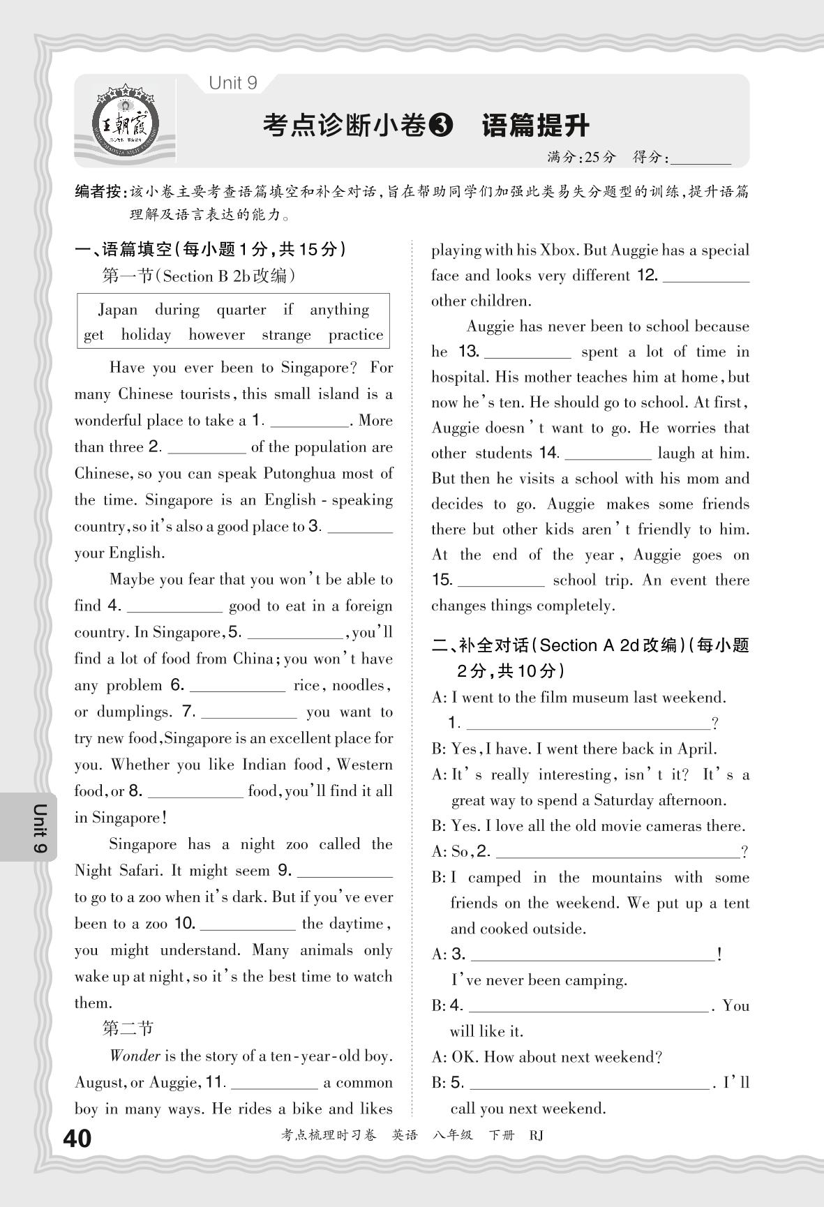 2024春下册八年级英语人教版 Unit 9 考点诊断小卷3 语篇提升_R240117170253583