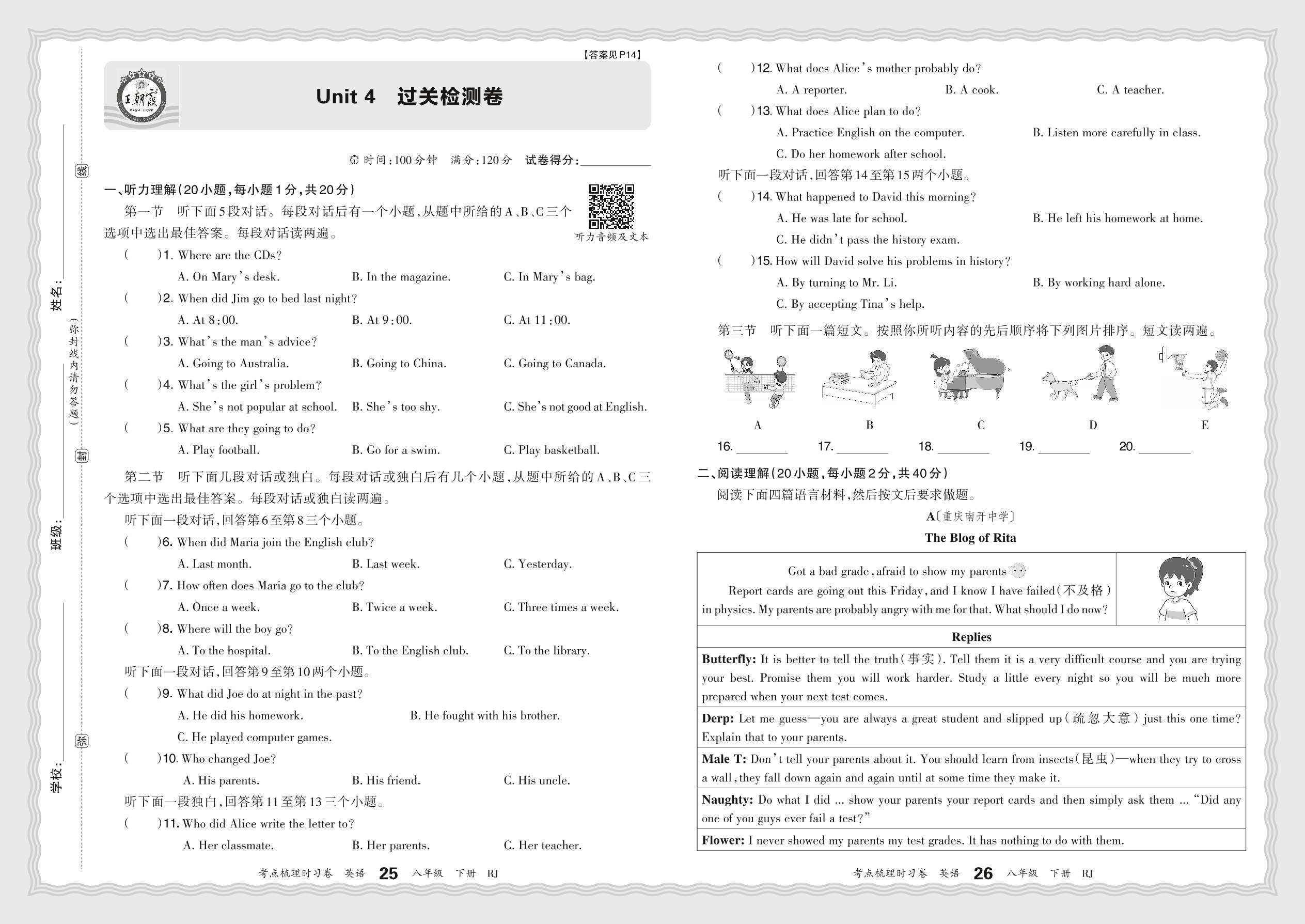 八年级英语人教版下册单元卷