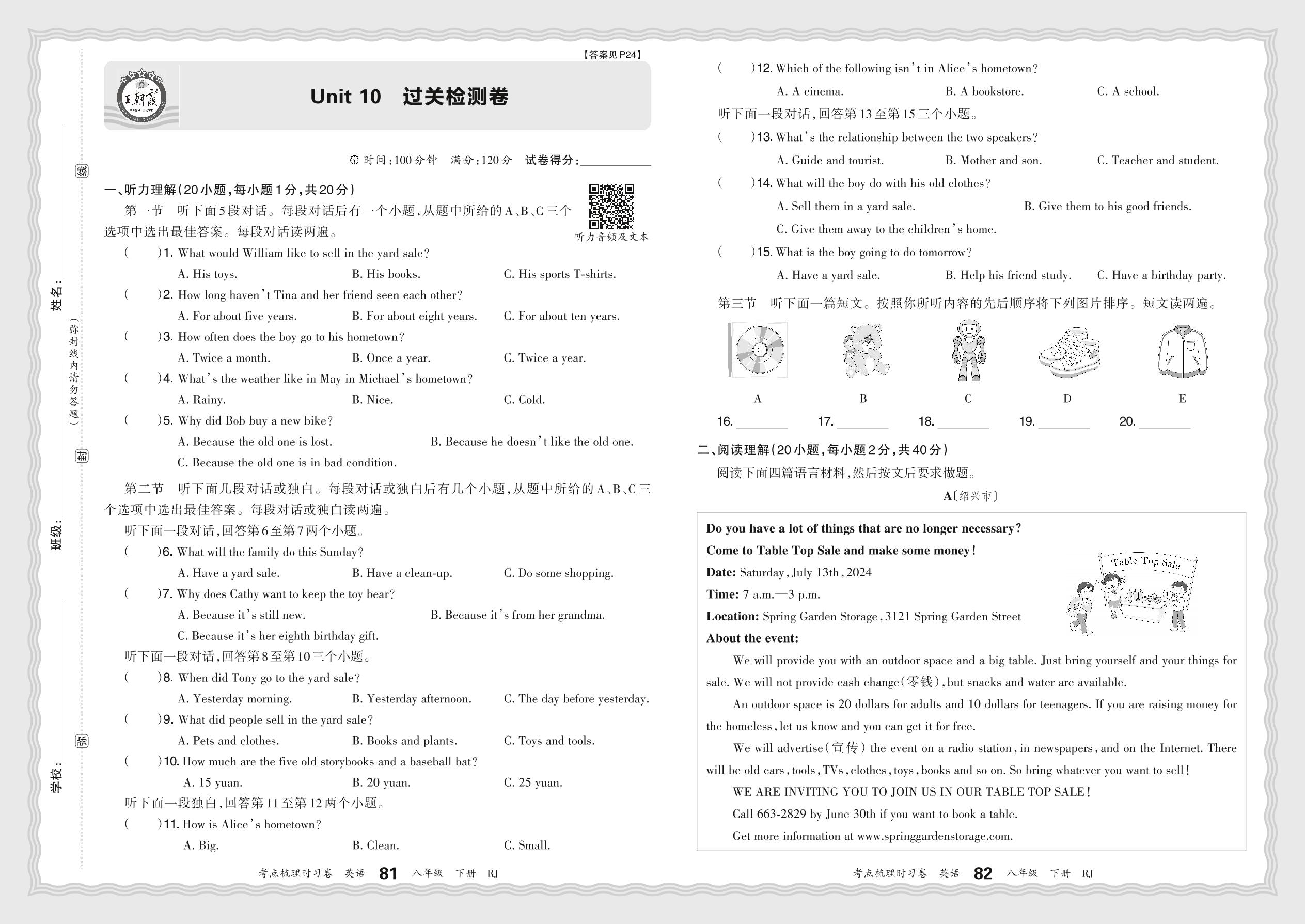 八年级英语人教版下册单元卷