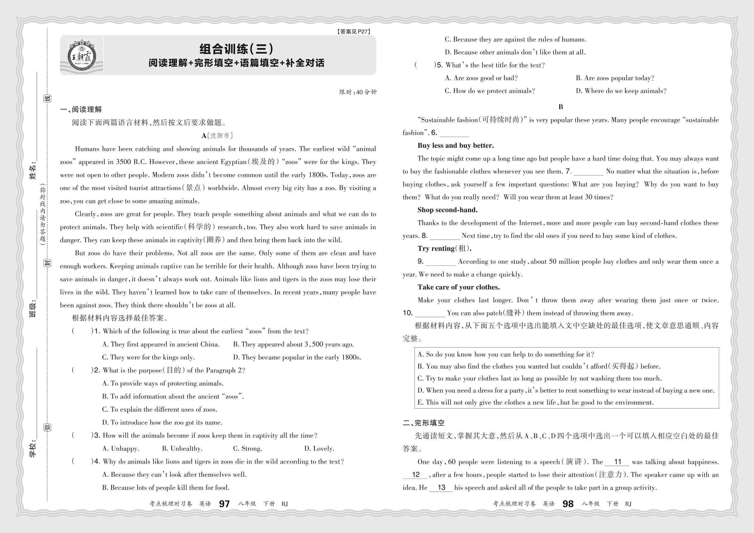 2024春下册八年级英语人教版 组合训练(三)_R240117170300674