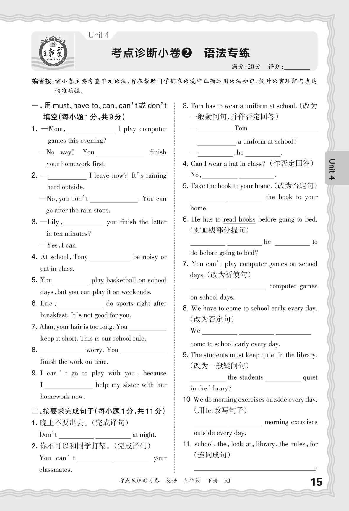 2024春下册七年级英语人教版 Unit 4 考点诊断小卷2 语法专练_R240117171557571
