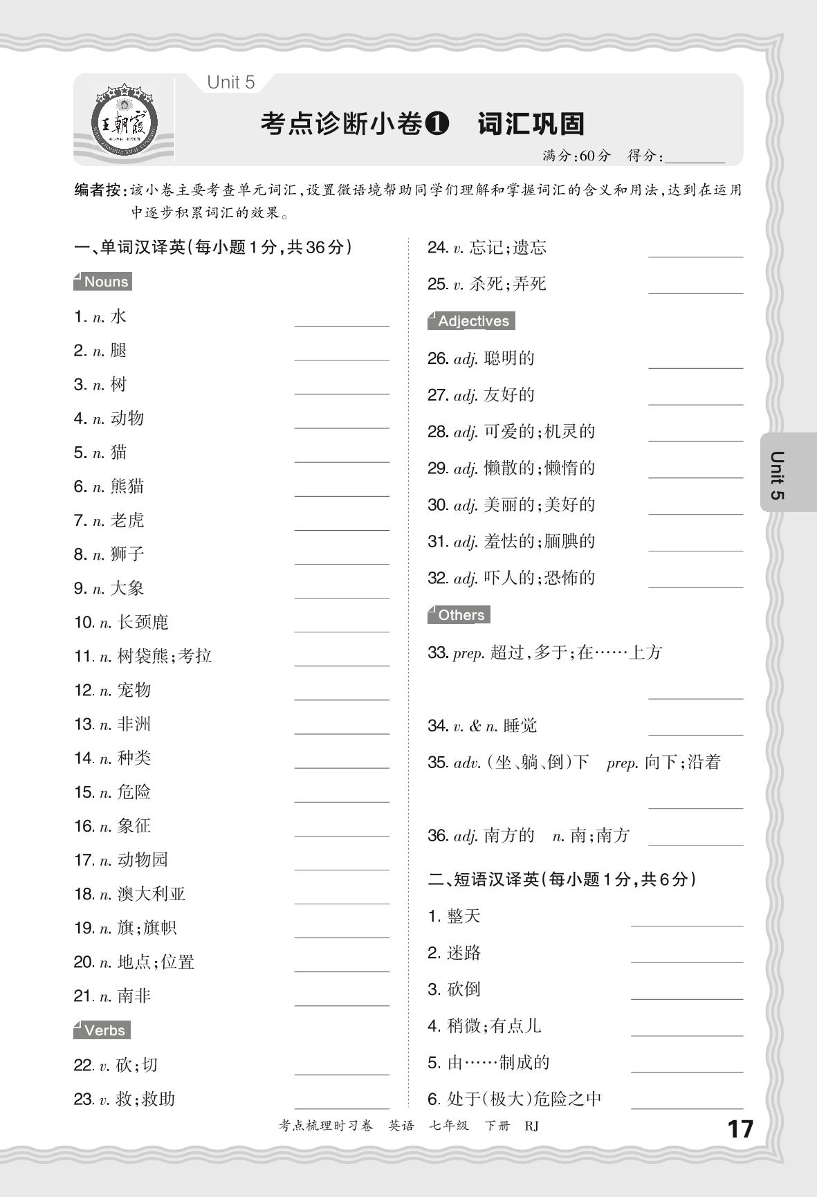 2024春下册七年级英语人教版 Unit 5 考点诊断小卷1 词汇巩固_R240117171558022